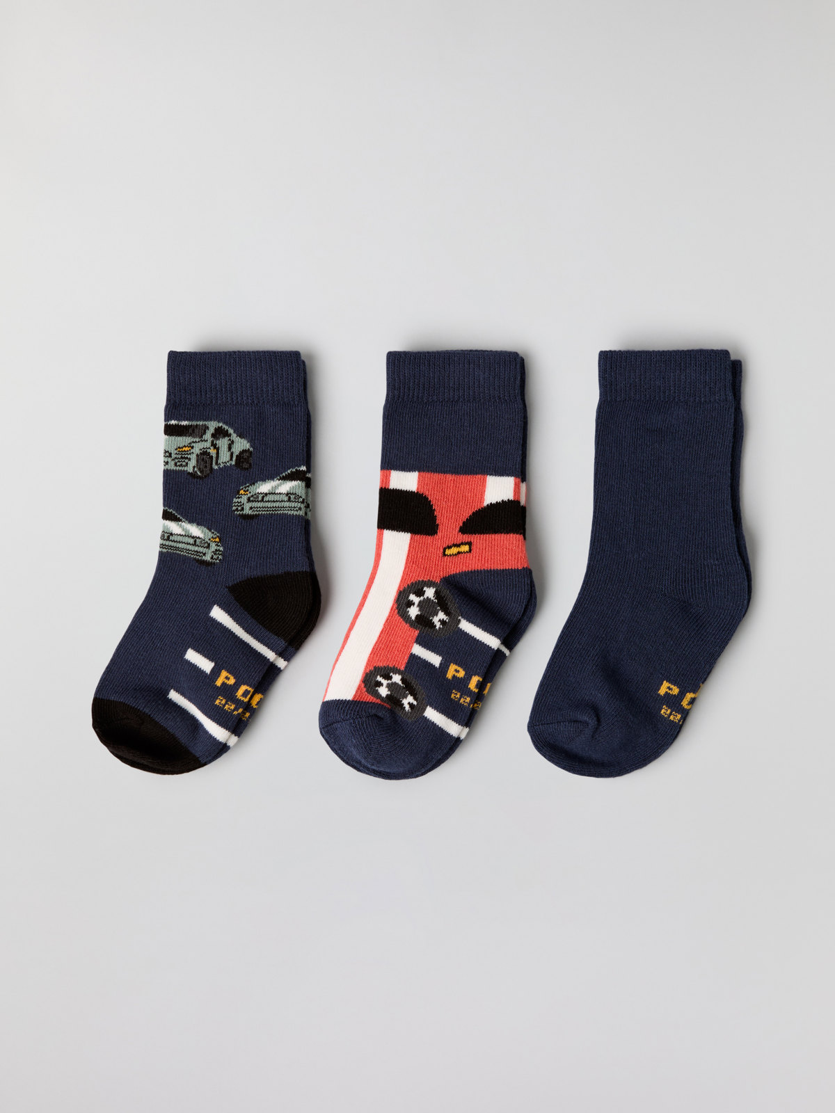 Sokker i myk økologisk bomull i 3-pakning. Hvert par har en unik design og passer fint sammen med øvrige kolleksjoner.