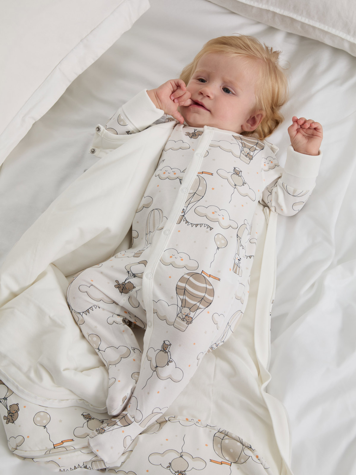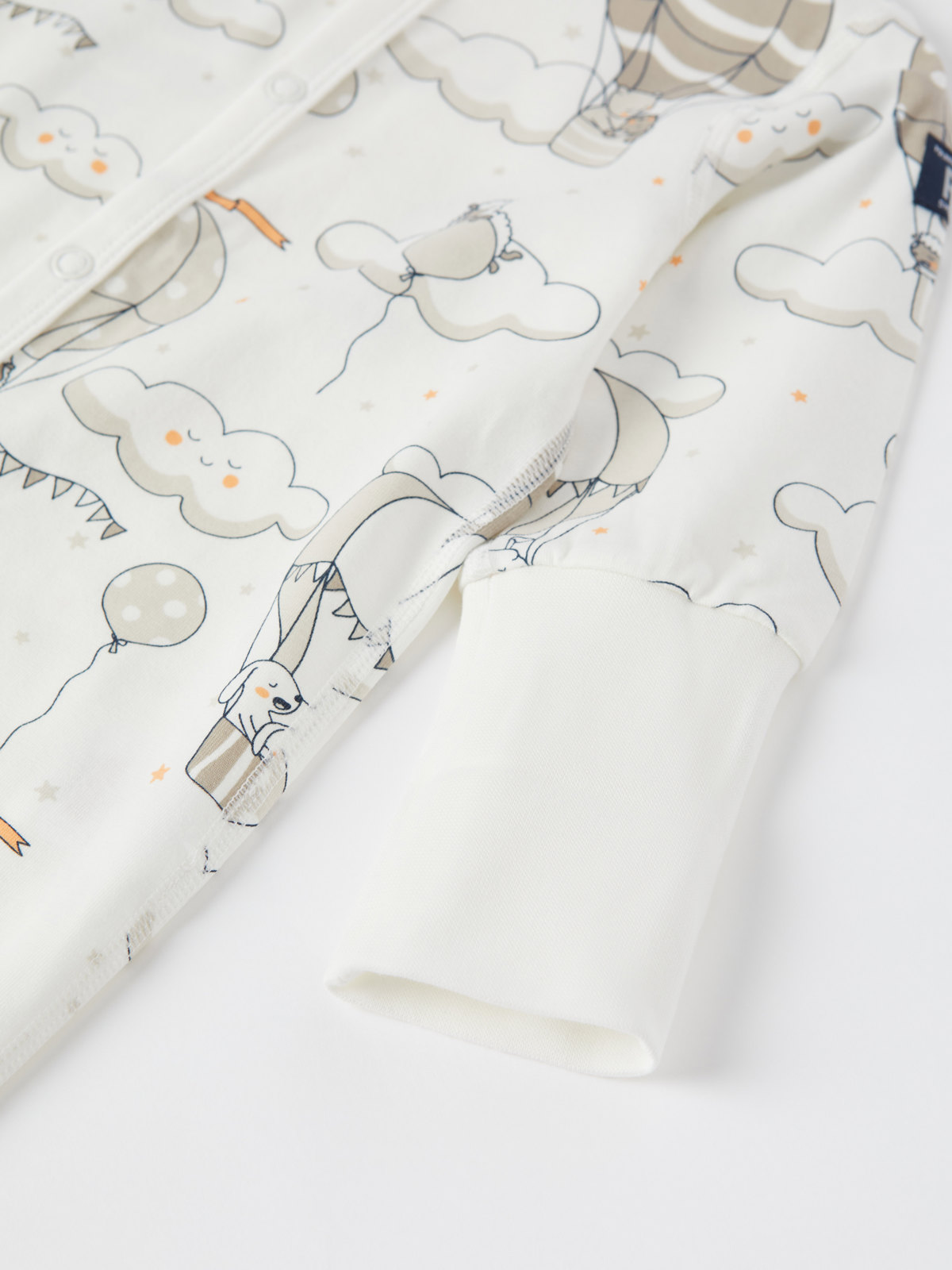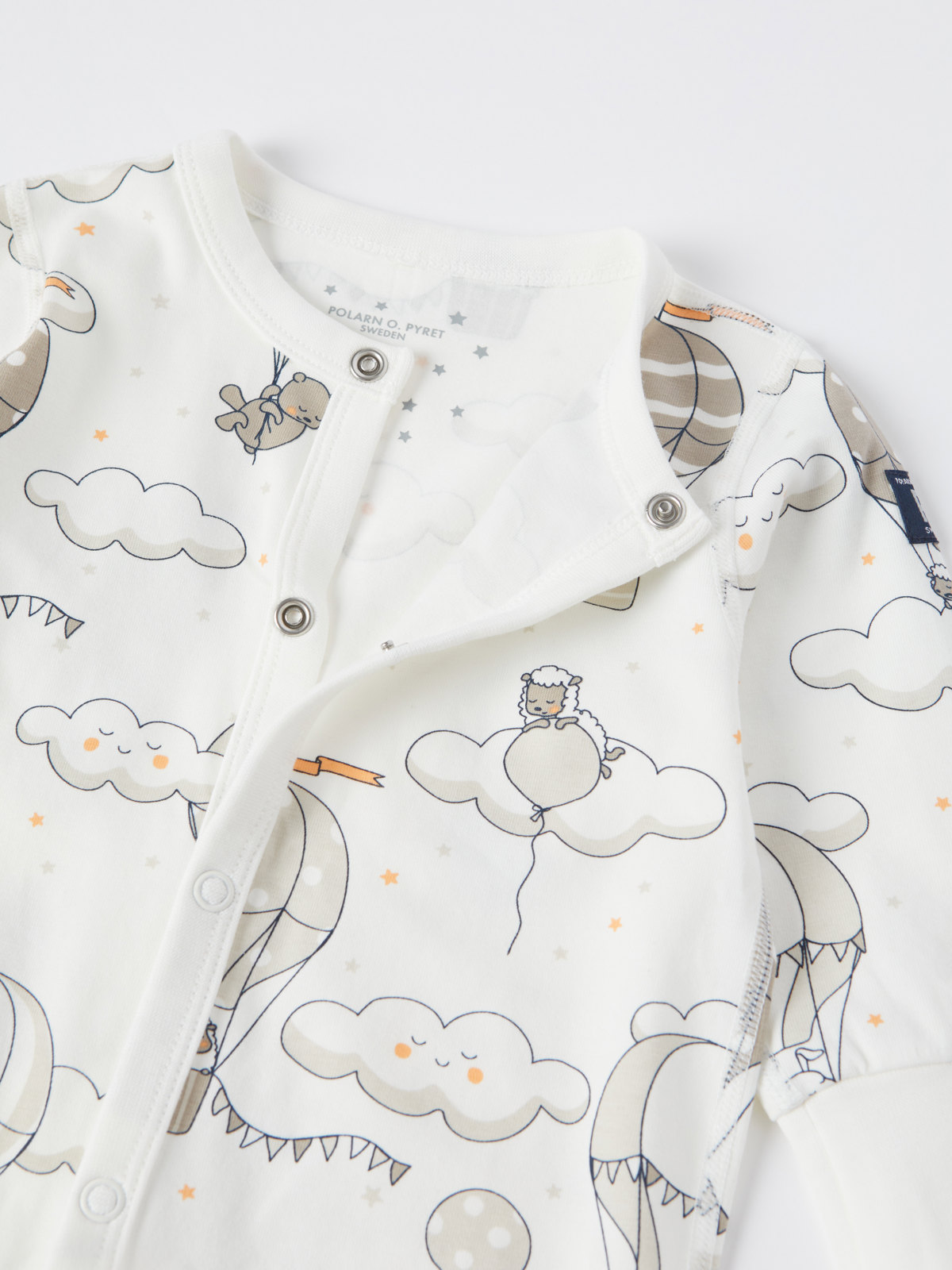 Hel pyjamas i myk økologisk bomull til de aller minste. Pyjamasen har et fint trykk med luftballonger.