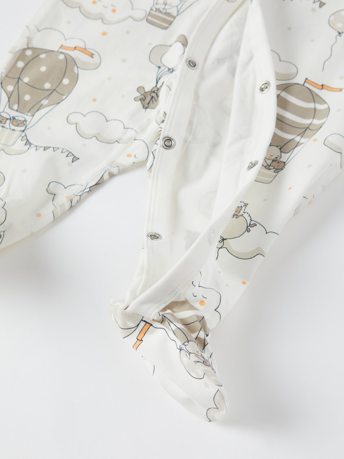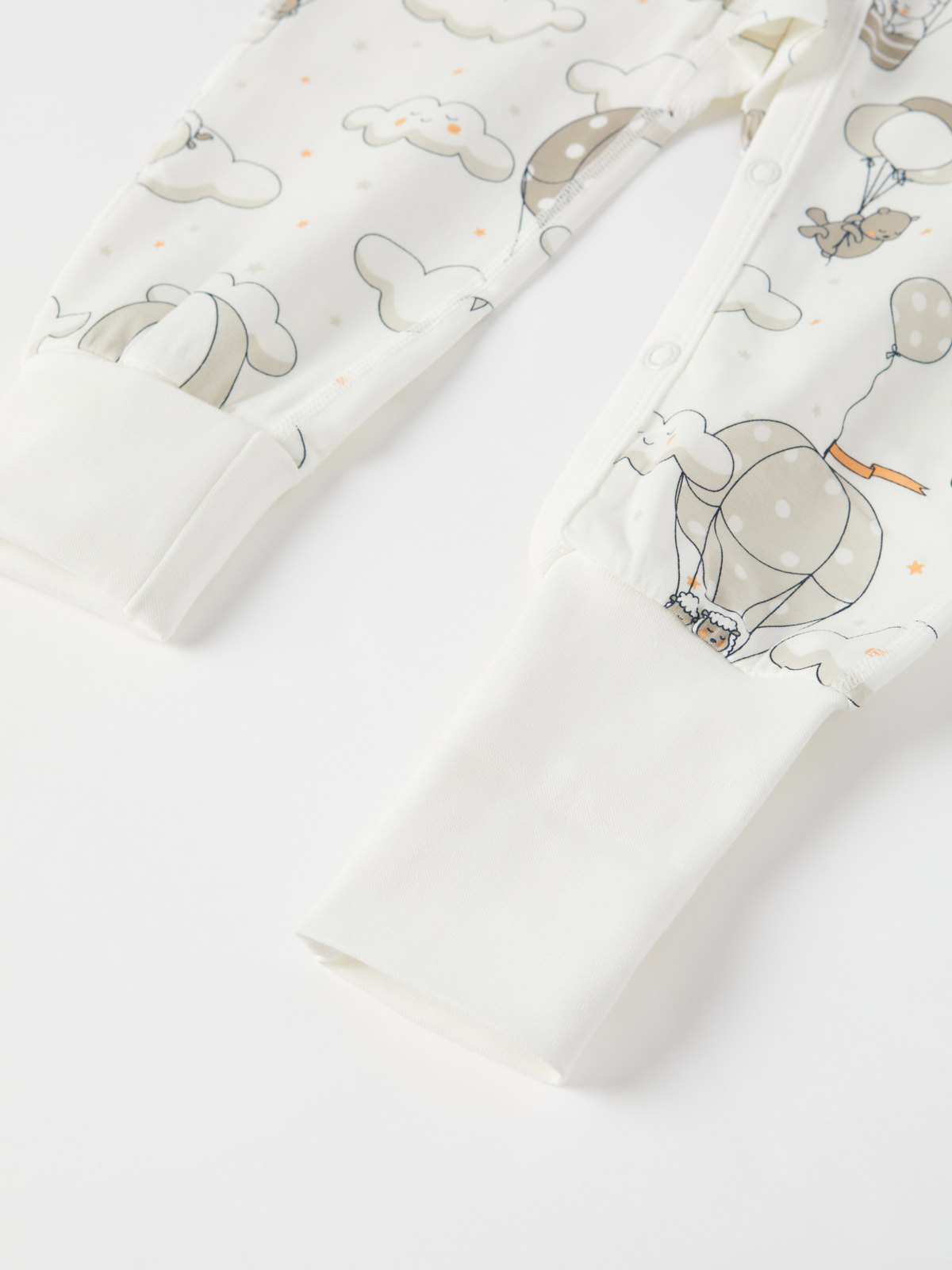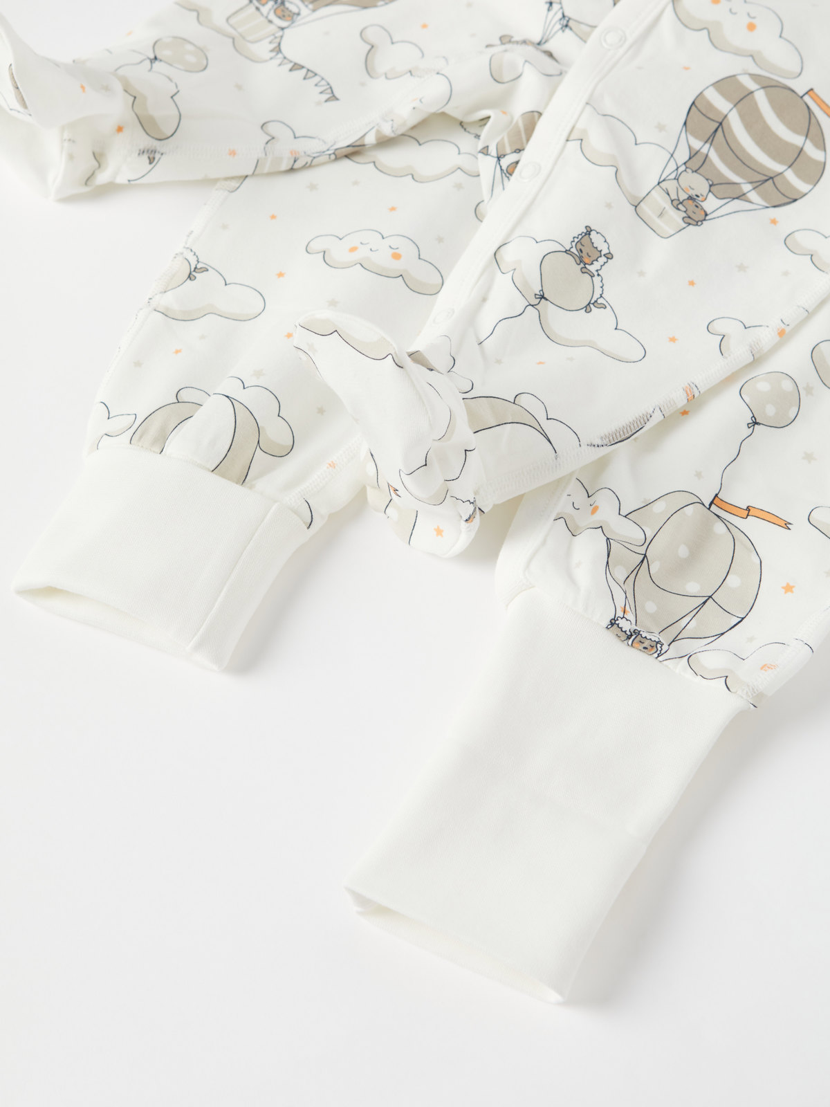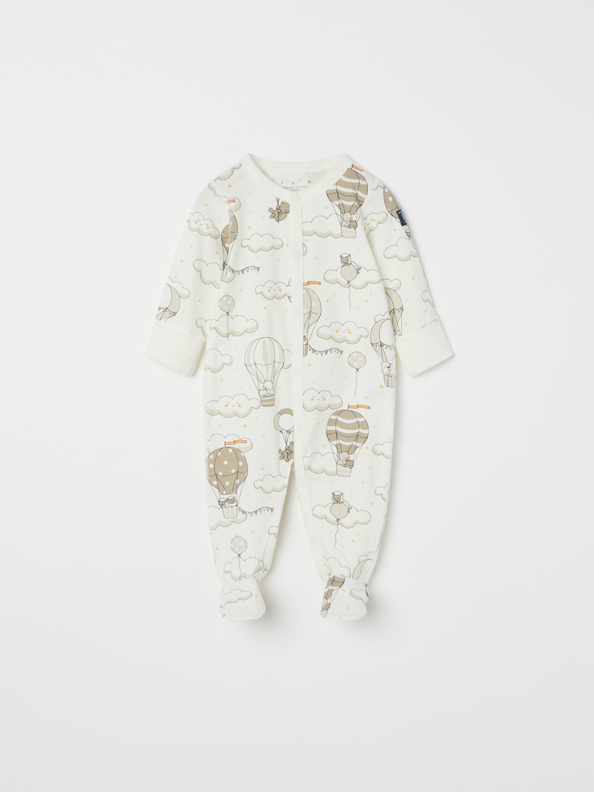 Hel pyjamas i myk økologisk bomull til de aller minste. Pyjamasen har et fint trykk med luftballonger.