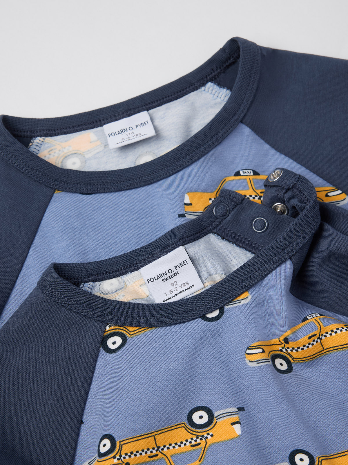Størrelsene 86–92 har trykknapper bak på den ene skulderen for enklere klesskift.