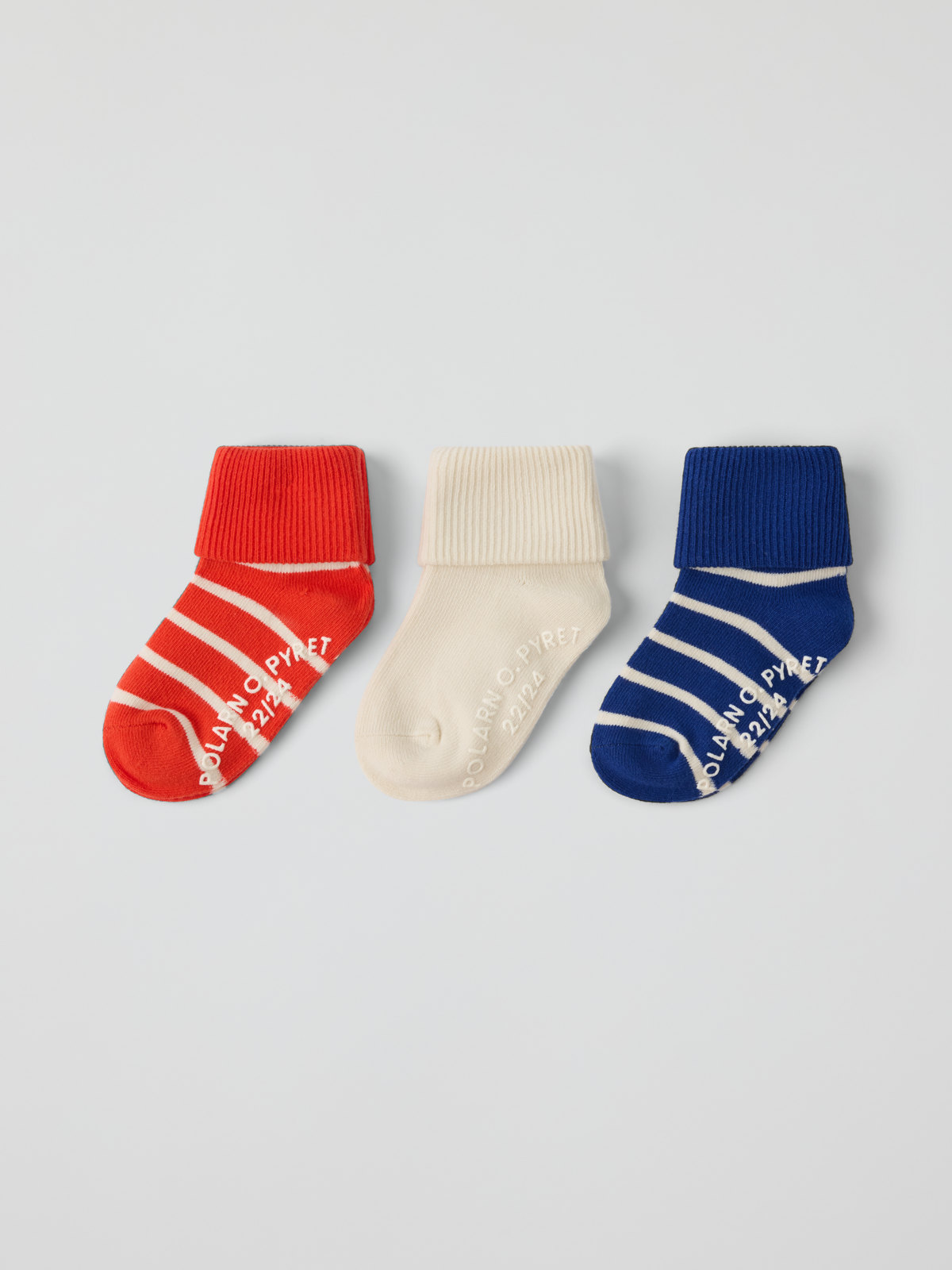 3-pakning sokker i myk økologisk bomull med antiskli – ekte kundefavoritter! Sokker med lang kant som kan brettes opp eller ned for en behagelig passform.