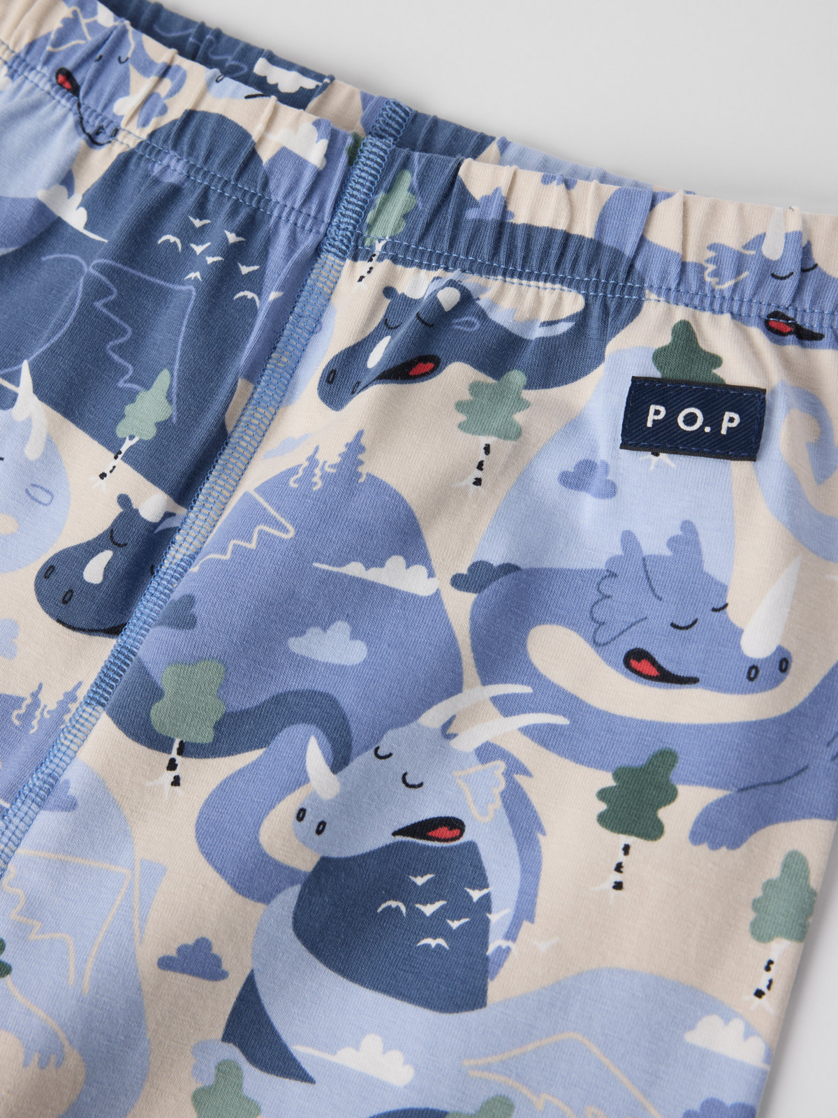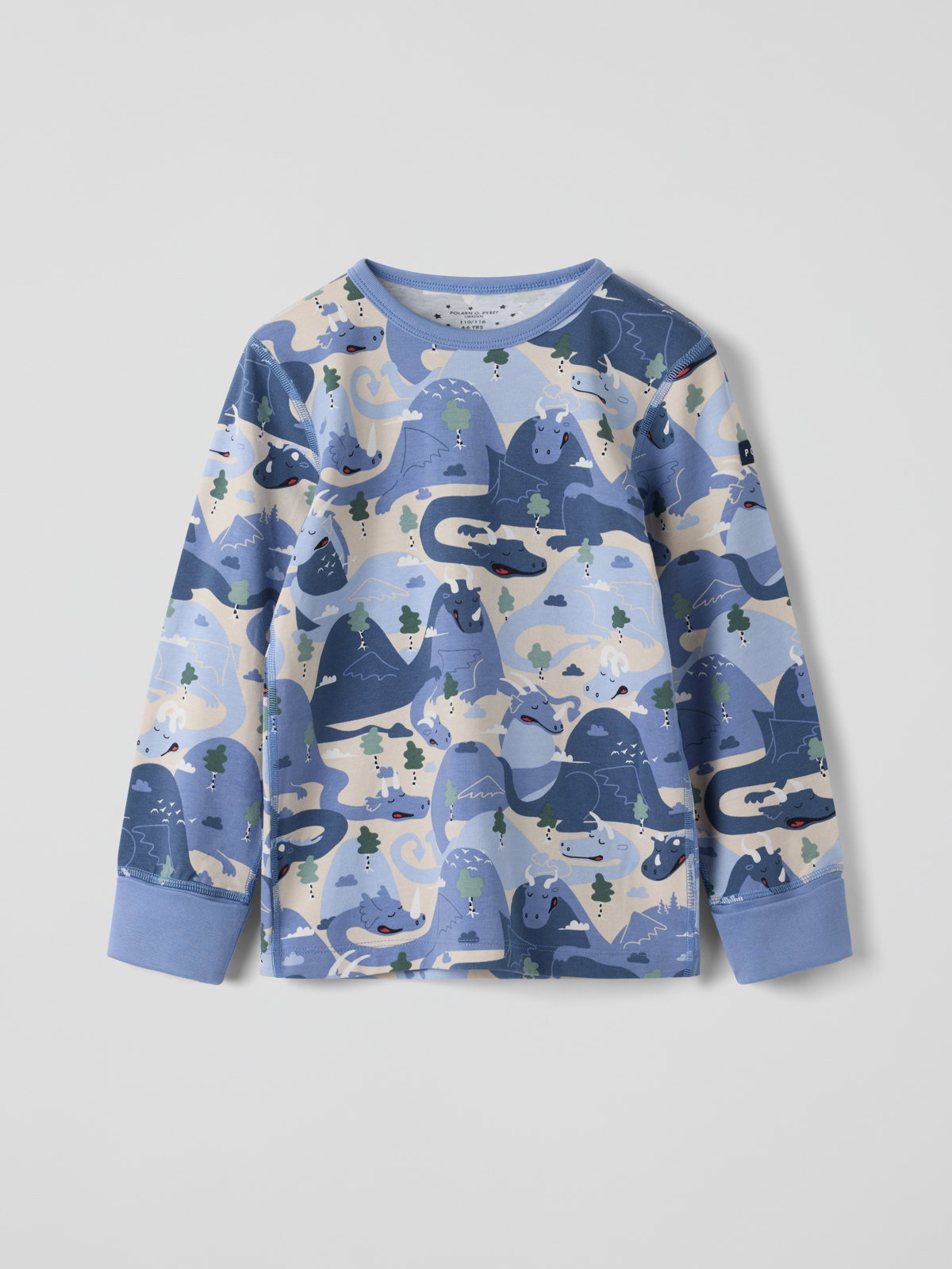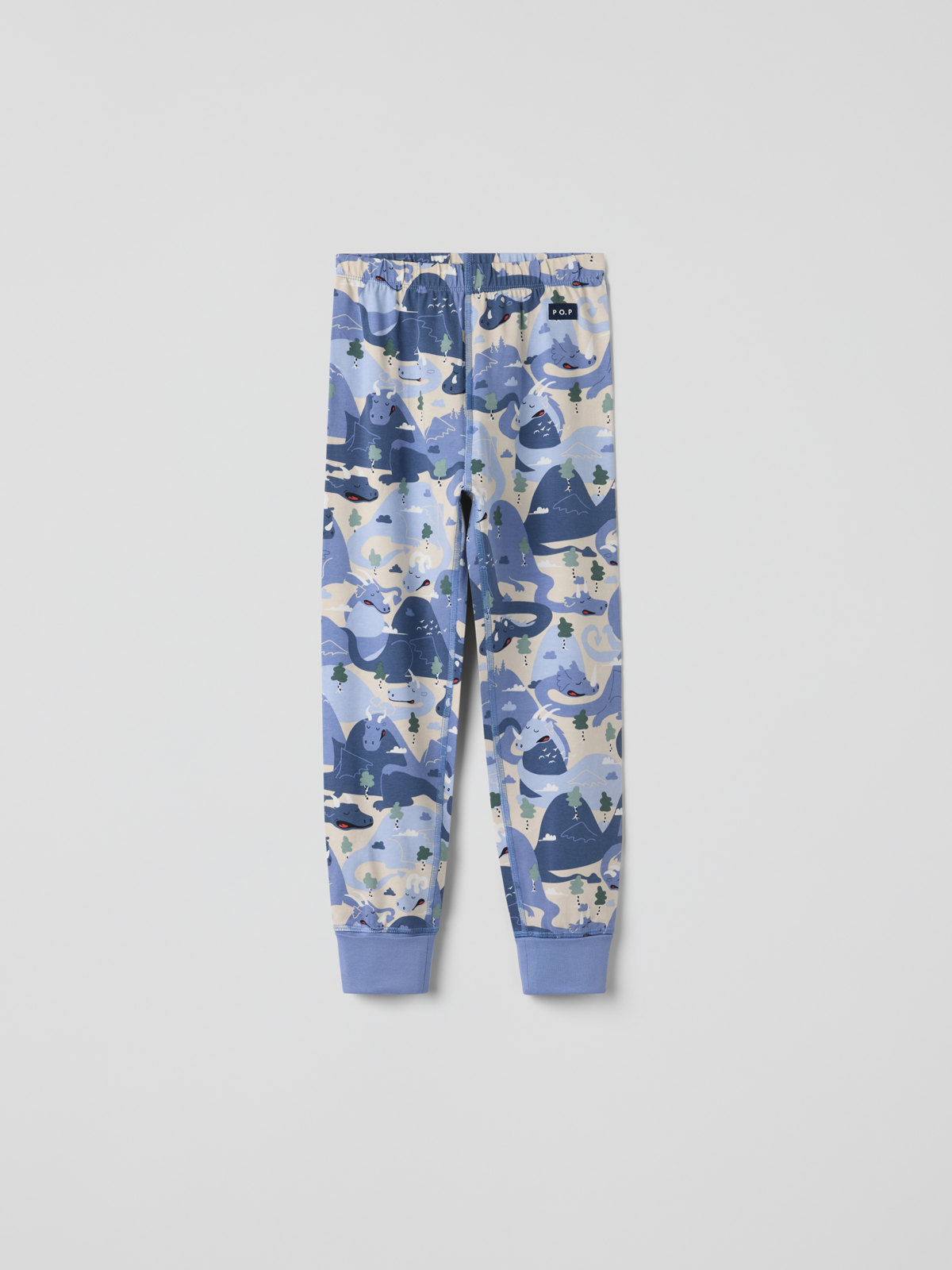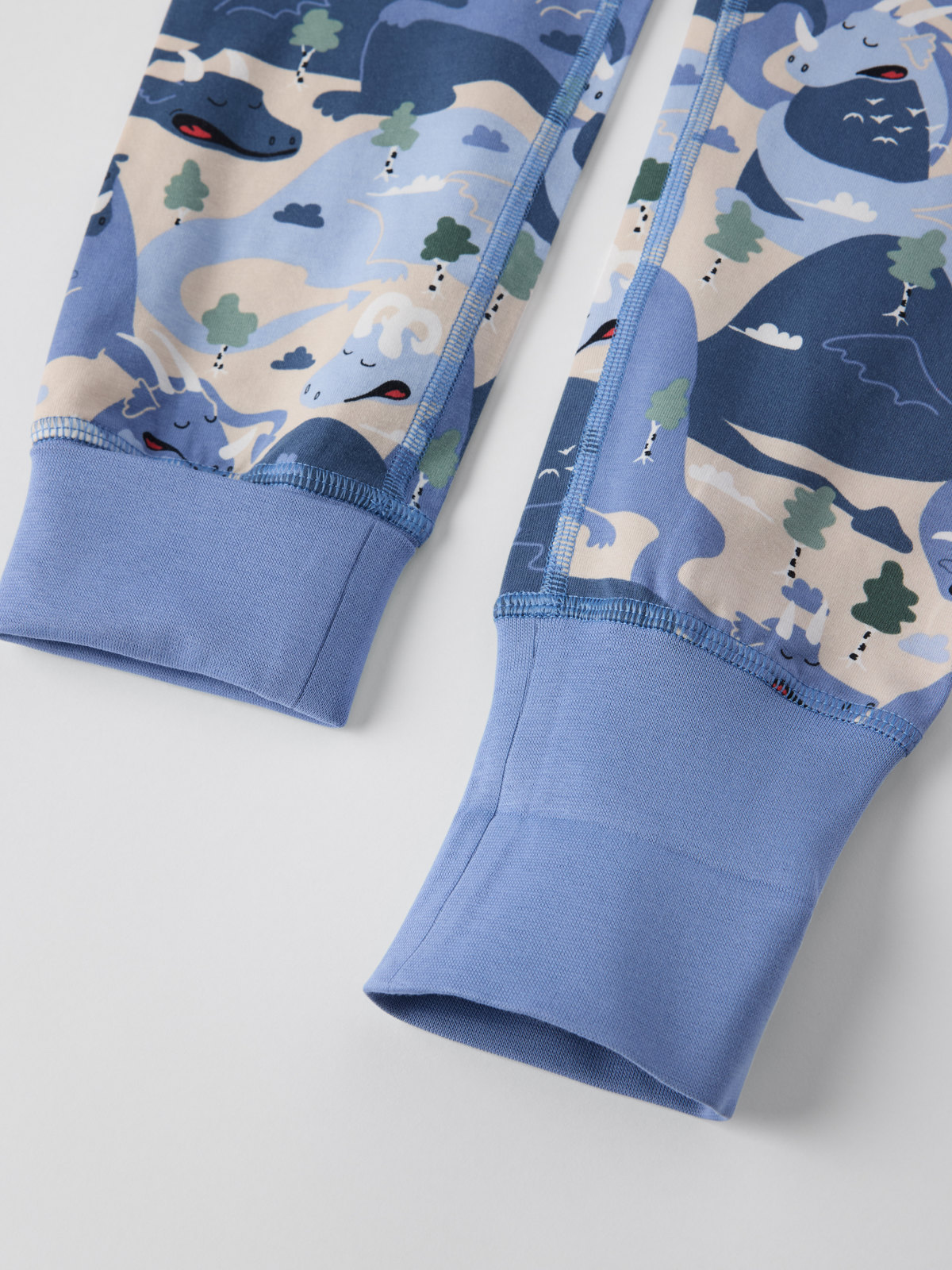 Todelt pyjamas i myk økologisk bomull. Overdelen har ekstra lang vrangbord nederst på ermene, som kan brettes opp eller ned. Buksen har elastisk midje og ekstra lang vrangbord nederst på bena.
