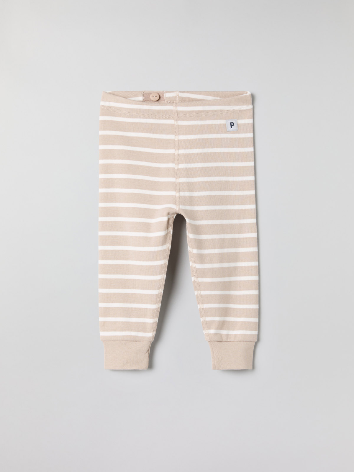 Stripet bukse i 100 % økologisk bomull, til baby. Et mykt og deilig basisplagg for alle anledninger!