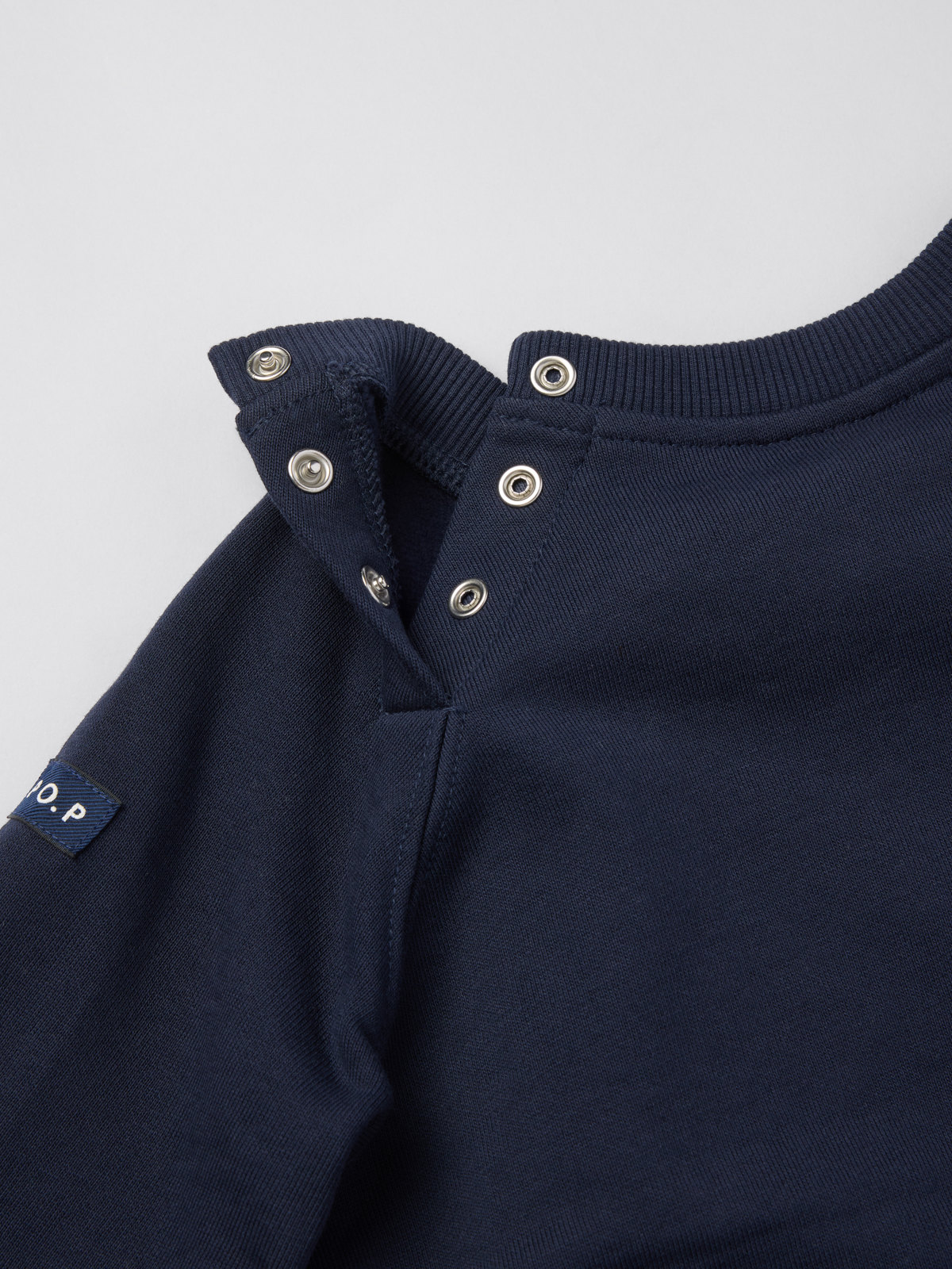 Størrelsene 86–92 har trykknapper bak på den ene skulderen for enklere klesskift.