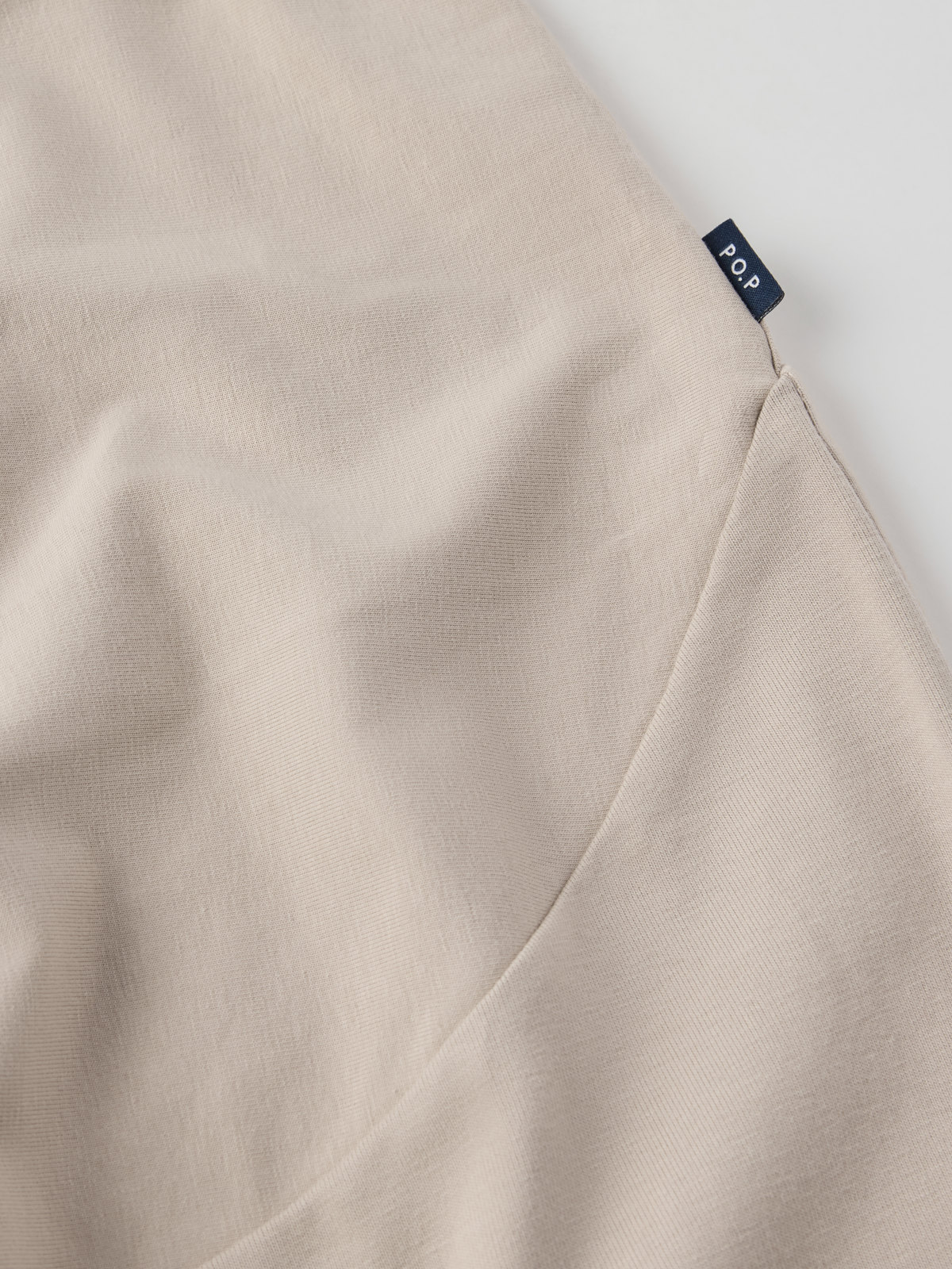 MAMA-bukse i myk, økologisk bomullstrikot – behagelig både under graviditeten og etter fødselen. Buksen har vide ben og en bred, elastisk linning som ligger mykt over den voksende magen. Linningen kan også brettes ned og brukes etter graviditeten.