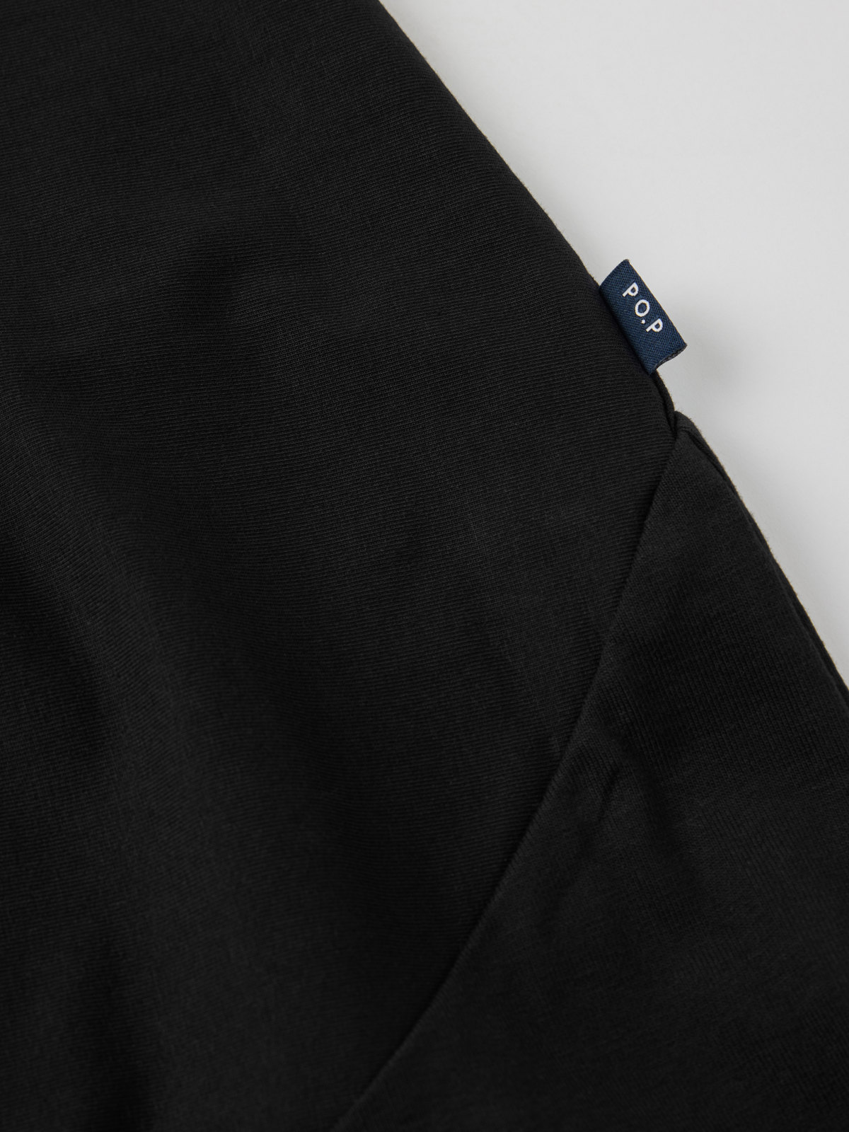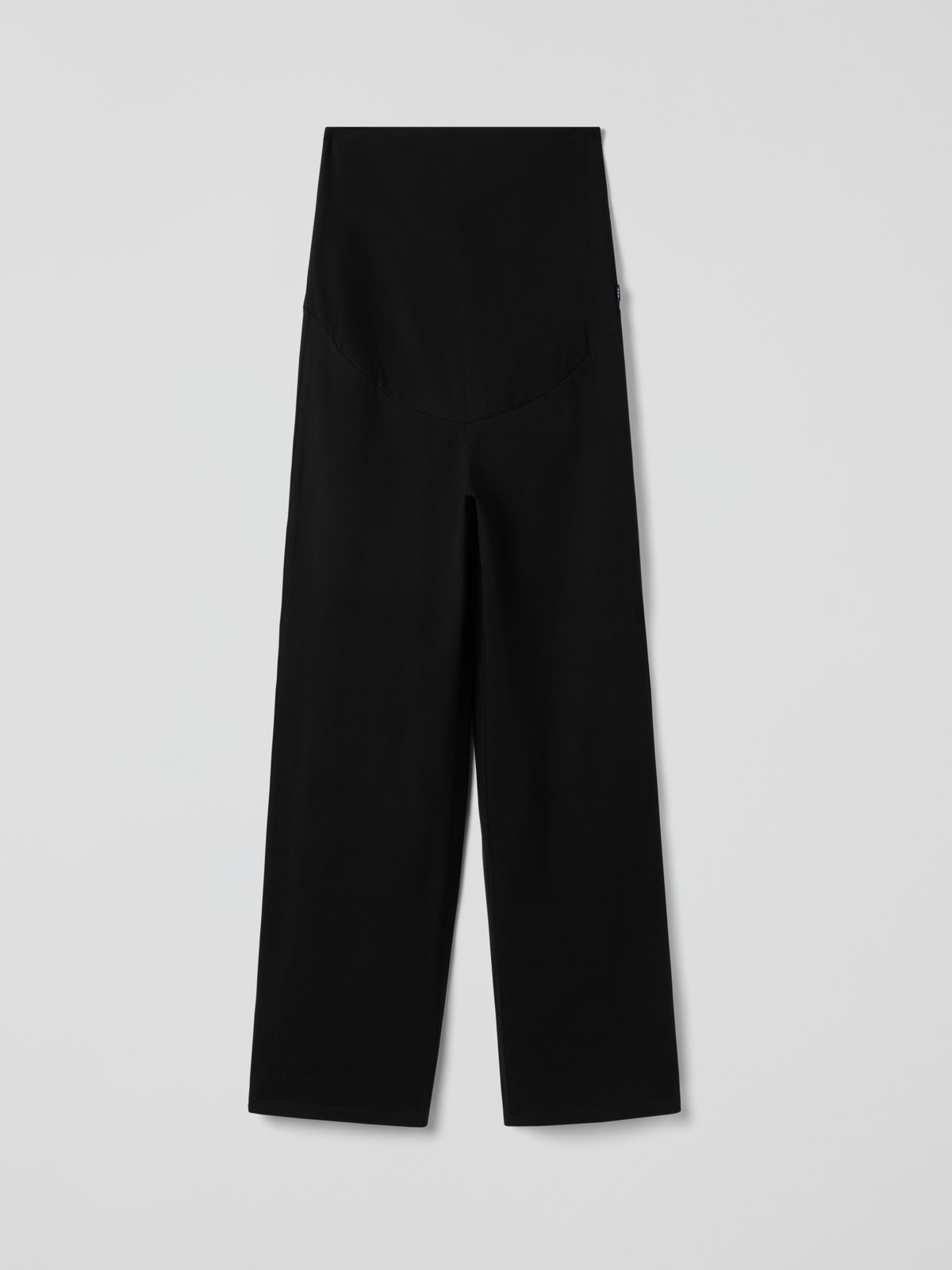 MAMA-bukse i myk, økologisk bomullstrikot – behagelig både under graviditeten og etter fødselen. Buksen har vide ben og en bred, elastisk linning som ligger mykt over den voksende magen. Linningen kan også brettes ned og brukes etter graviditeten.