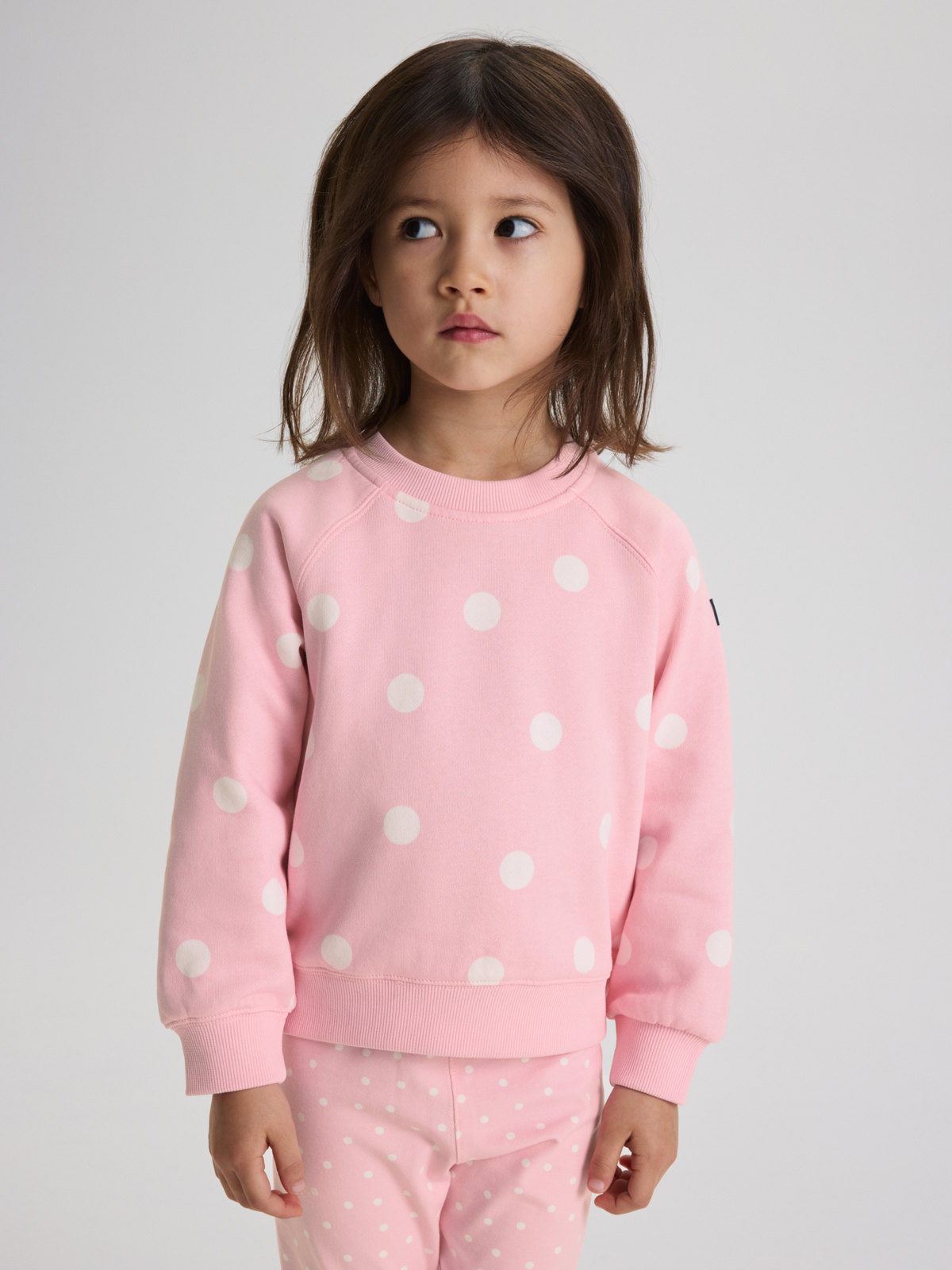 Prikket sweatshirt laget av 100 % myk økologisk bomull – perfekt til alle anledninger! Genseren har ribbestrikket kant i halsringning og ermelinninger for en behagelig passform.
