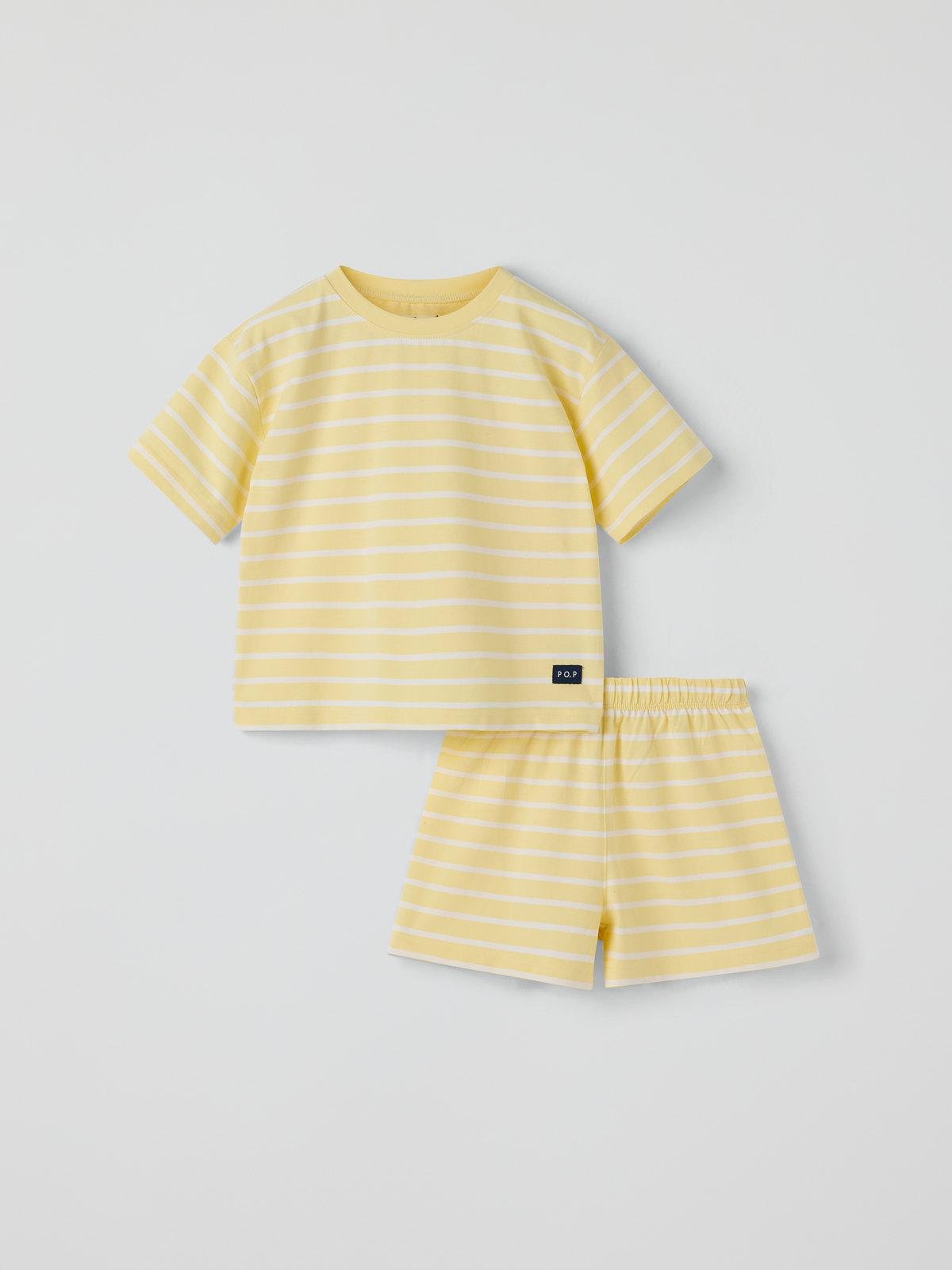 Kortermet pysjamas med striper i økologisk bomull, sydd med ekstra myke, flate sømmer – en ekte sommerfavoritt for gode netter!