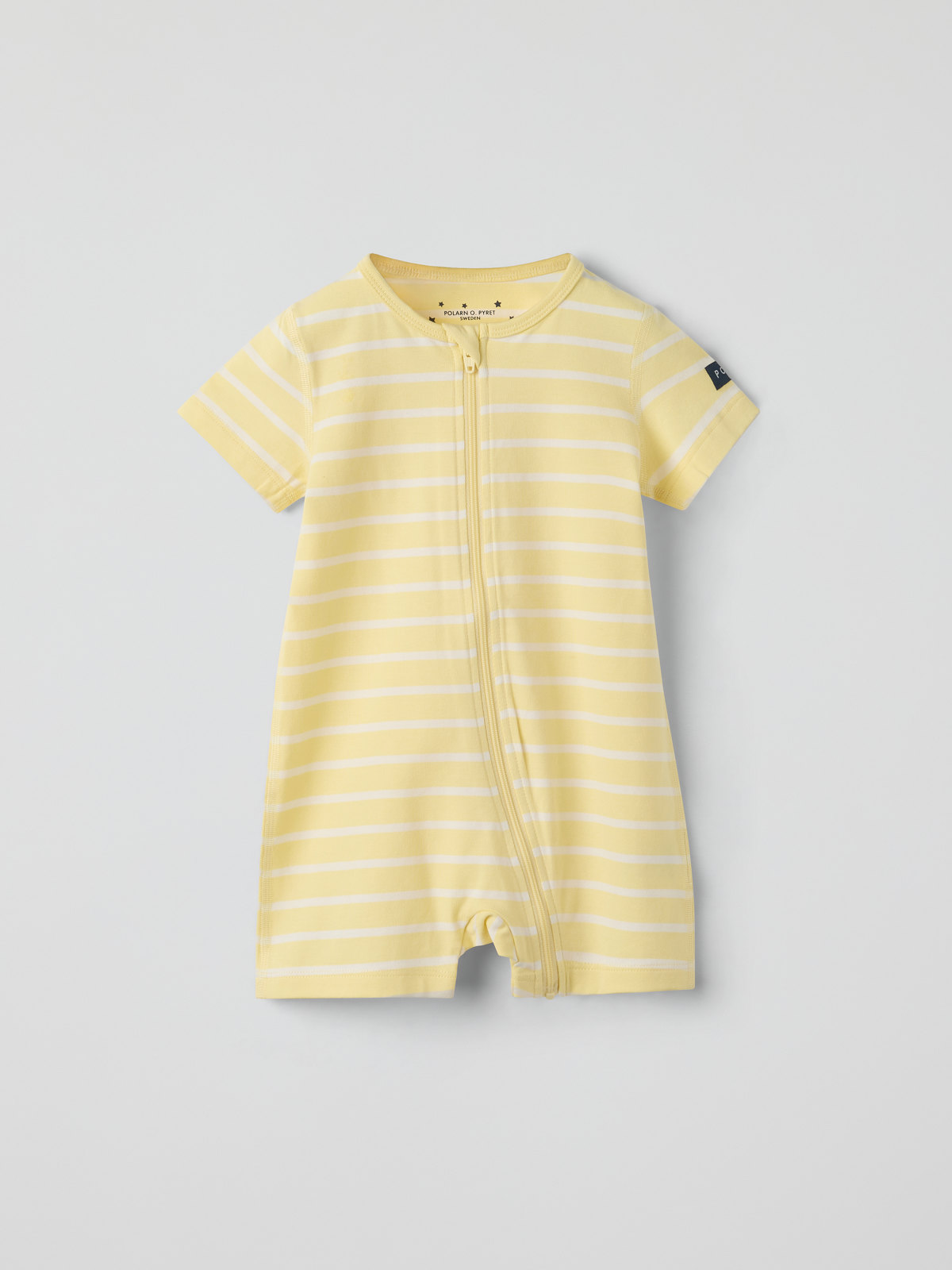 Kort pyjamasoverall i myk, økologisk bomull – perfekt for varme netter! Overallen har ekstra myke sømmer og er skånsom mot sensitiv hud.