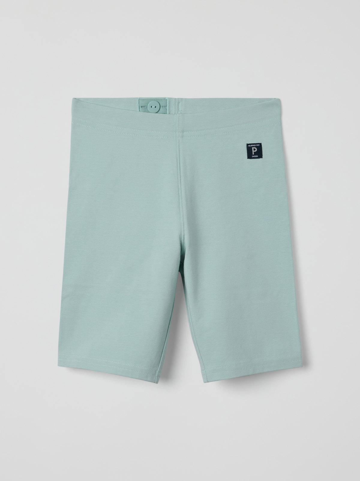 Ensfarget sykkelbukse i myk økologisk bomull – den perfekte sommershortsen! Midjen er elastisk og kan reguleres på innsiden med knapphullsstrikk. Shortsen finnes i flere farger som matcher fint med hele kolleksjonen.