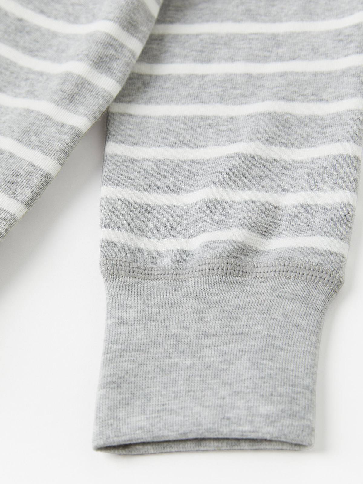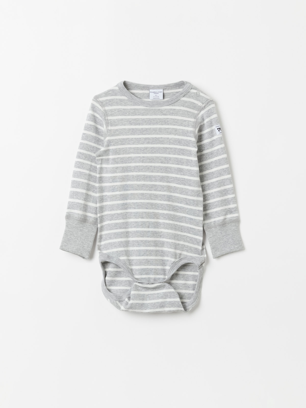 Body til baby, i våre klassiske striper og ny fargesammensetning. Trykknapper på den ene skulderen og nederst for enklere bleieskift og av- og påkledning.