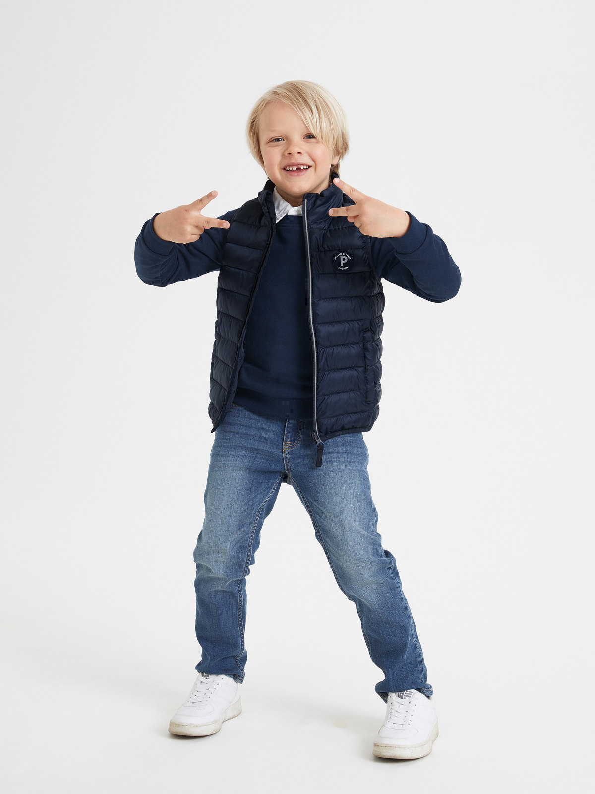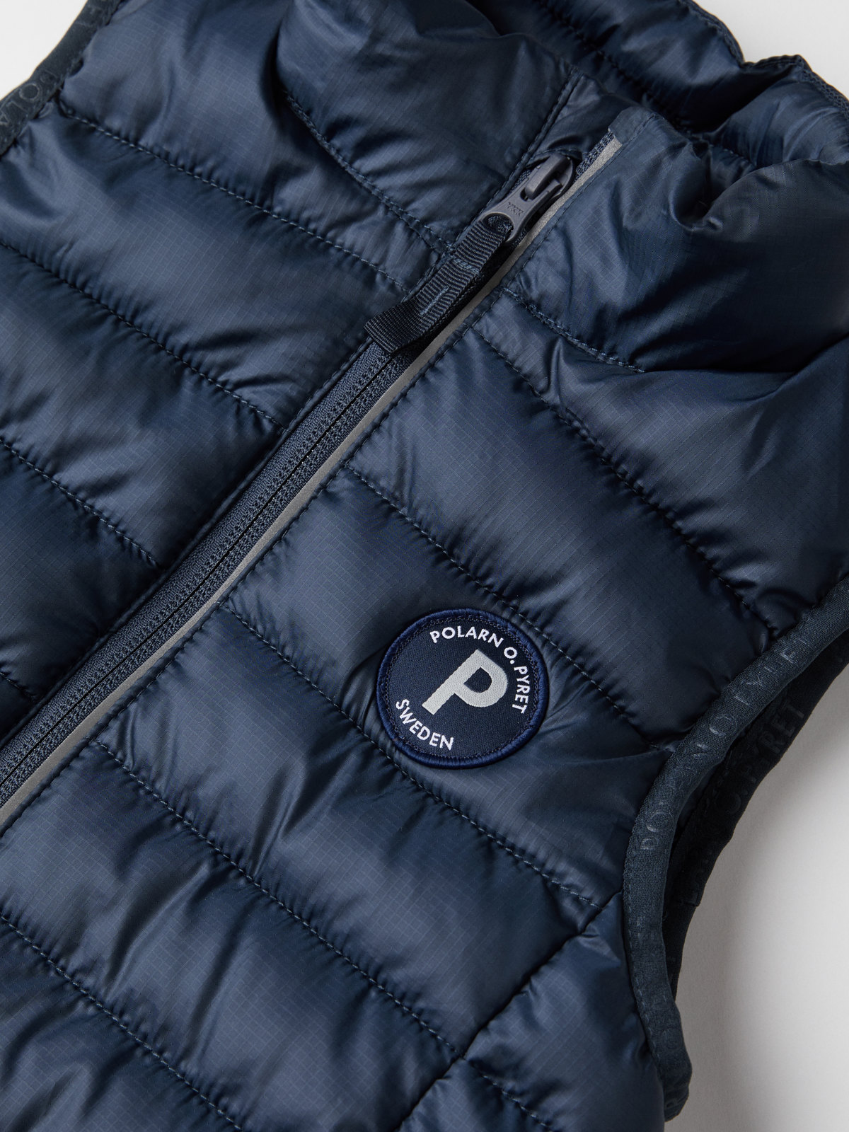 En lett vattert vest i 100 % resirkulert polyester. Vesten er både vindtett og vannavvisende, og varmer godt samtidig som den er myk og smidig.