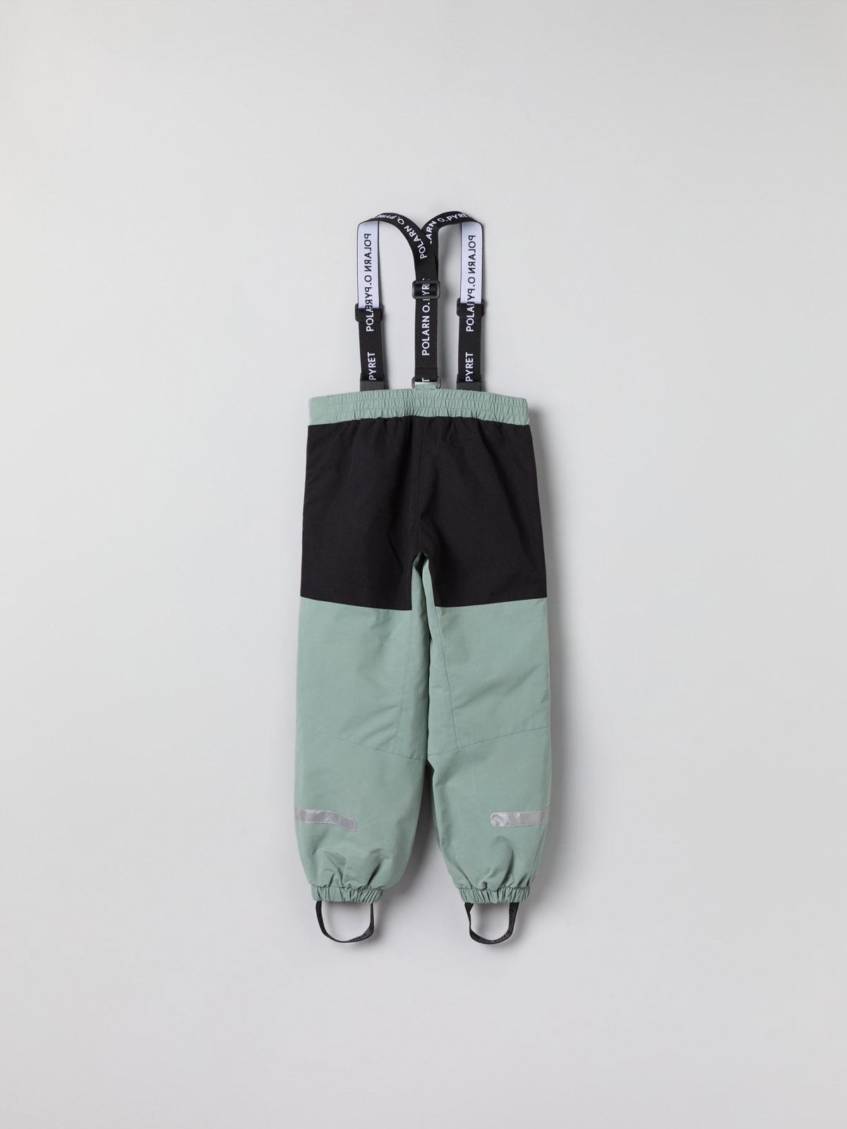 • Utskiftbare fotstrikker holder buksebena på plass (størrelsene 134–152 har ikke fotstrikker)
