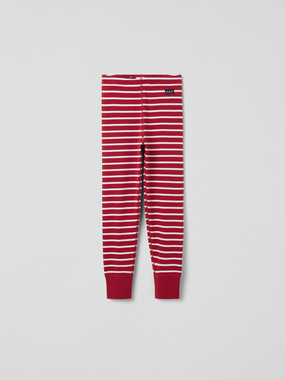 Ribbestrikket trikotbukse i myk økologisk bomull. Et perfekt basisplagg som passer både hjemme og i barnehagen. Buksen har våre klassiske striper og elastisk midje som kan reguleres på innsiden med knapphullsstrikk. Den har også myk vrangbord nederst på bena.