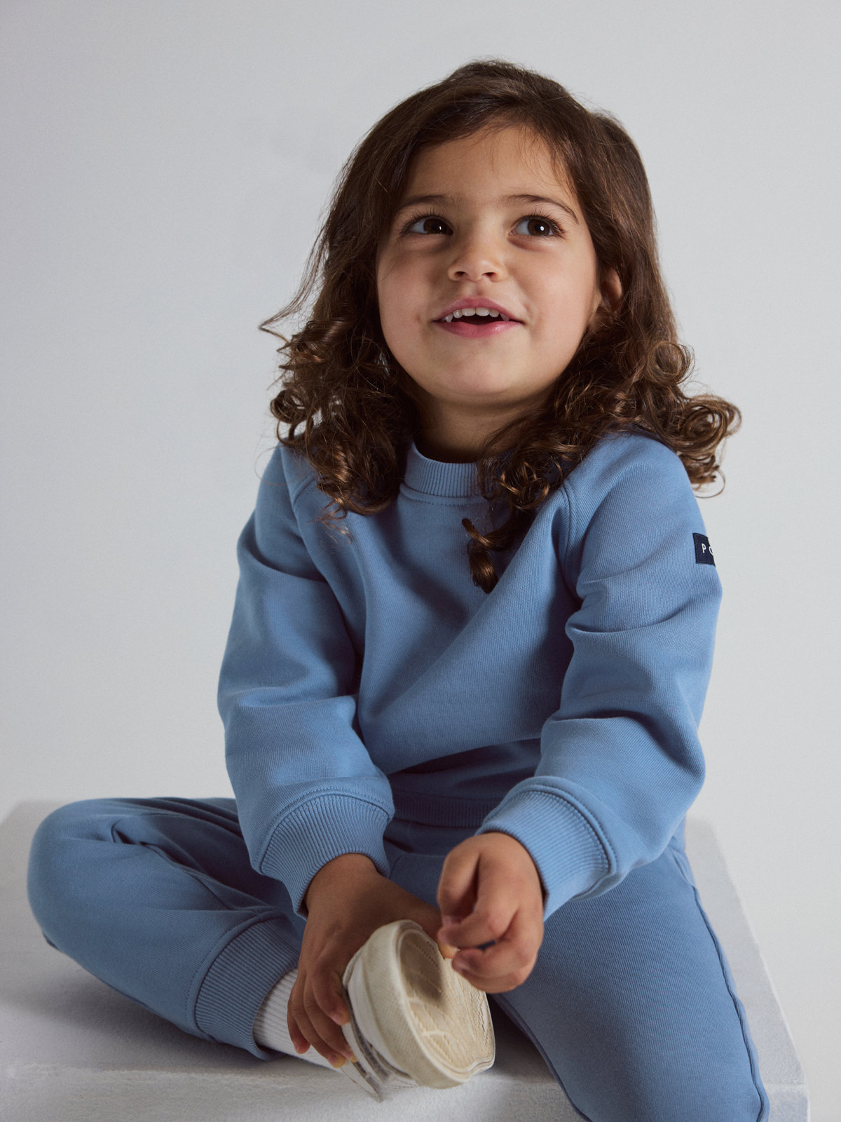 Sweatshirt laget av 100 % myk økologisk bomull – perfekt til alle anledninger! Genseren har ribbestrikket kant i halsringning og ermelinninger for en behagelig passform.