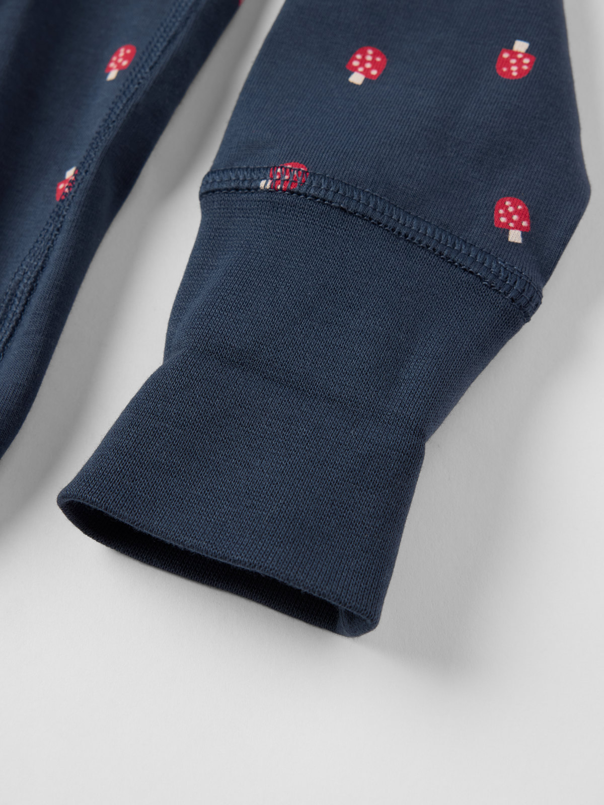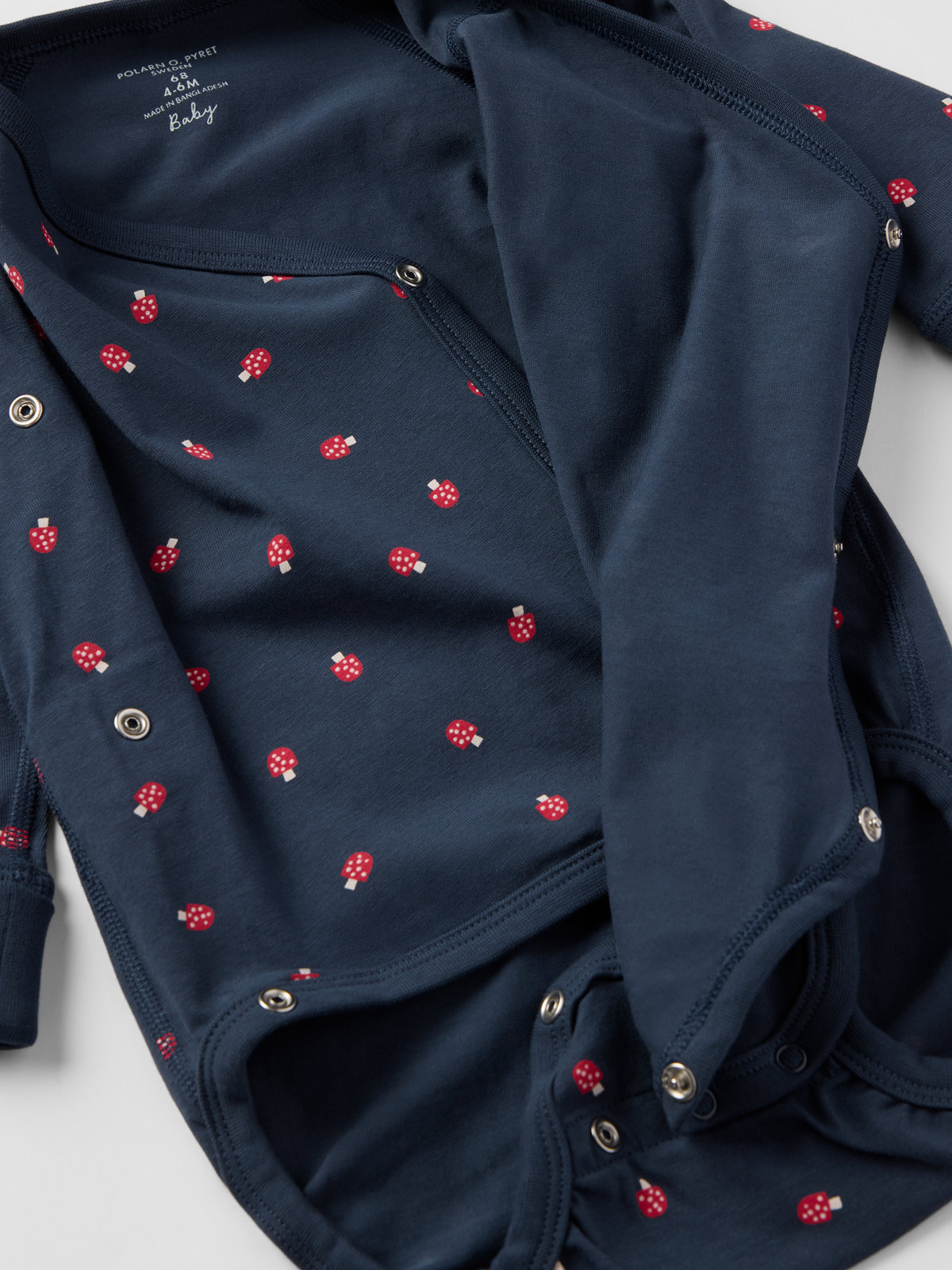 Forlengbar omslagsbody i 100 % økologisk bomull. Den smarte løsningen med en ekstra rad trykknapper i skrittet og nedbrettbar vrangbord nederst på ermene gjør at bodyen kan vokse med babyen!