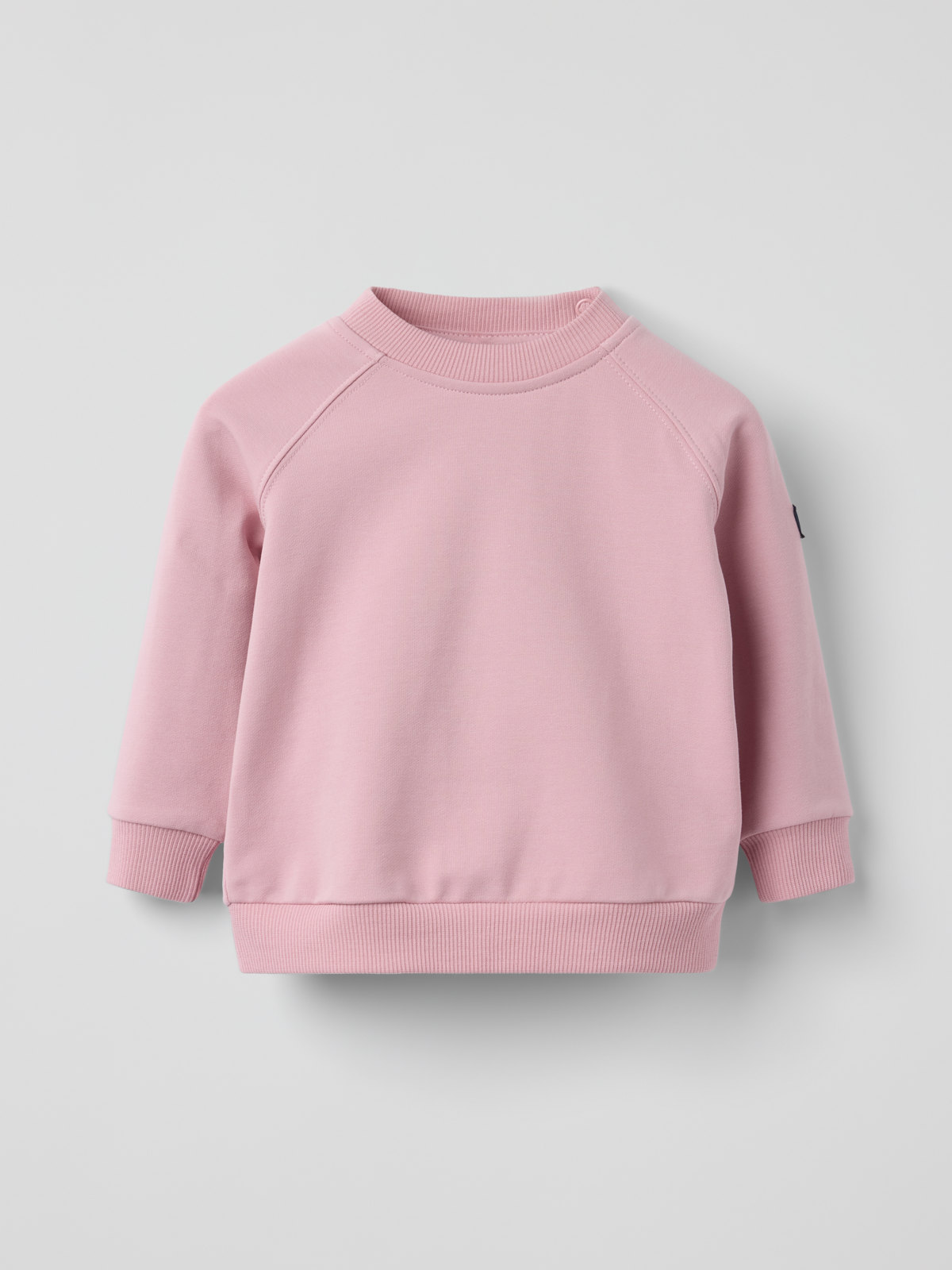 Genser i 100 % økologisk bomull med myk collegekvalitet til baby. Et perfekt plagg for alle anledninger! Genseren har ribbestrikket vrangbord i halsutringningen og nederst på ermene. Trykknappene på den ene skulderen gir enklere klesskift.