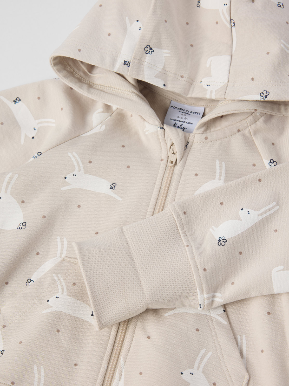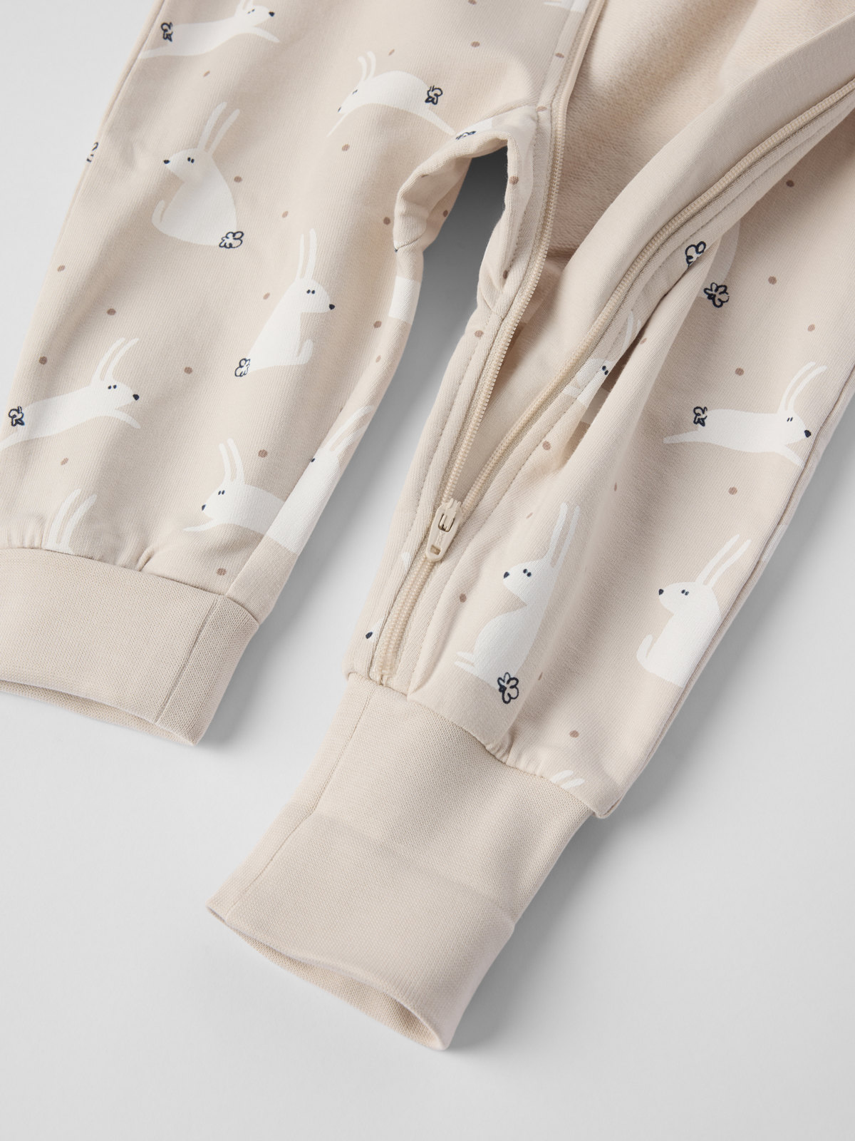 Myk dress i økologisk bomull til baby, med deilig collegekvalitet og børstet innside. Dressen har kengurulomme og fast hette som er fôret med myk bomullstrikot i våre klassiske striper. Den lange glidelåsen fra hals til nederst på bena forenkler av- og påkledning, og har en beskyttelse øverst for å hindre at den gnager mot hake og kinn. Dressen har ekstra lange vrangboder nederst på ermene og bena, som kan brettes ned etter hvert som barnet vokser.