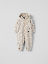 Myk dress i økologisk bomull til baby, med deilig collegekvalitet og børstet innside. Dressen har kengurulomme og fast hette som er fôret med myk bomullstrikot i våre klassiske striper. Den lange glidelåsen fra hals til nederst på bena forenkler av- og påkledning og har en beskyttelse øverst for å hindre at den gnager mot hake og kinn. Dressen har ekstra lange vrangboder nederst på ermene og bena, som kan brettes ned etter hvert som barnet vokser.