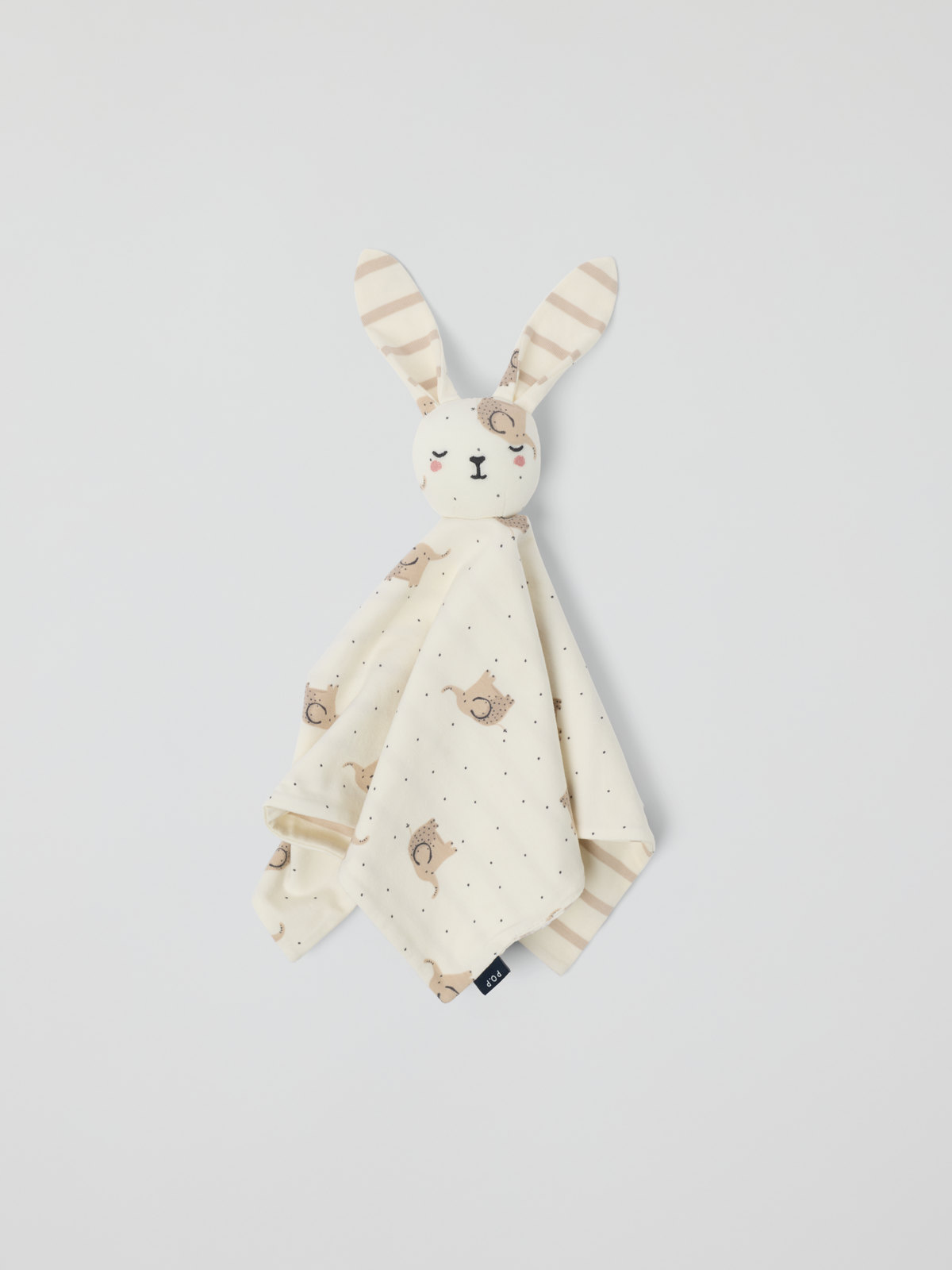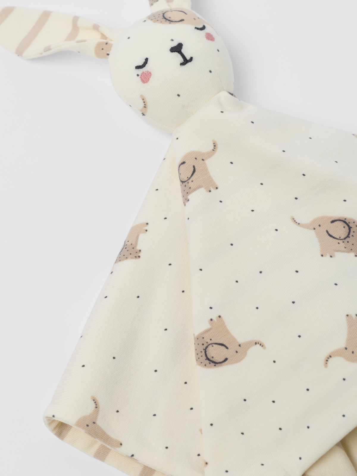 Myk koseklut i økologisk bomull som er snill mot sensitiv hud – perfekt i vognen, sengen eller på reise. Kosekluten har et lite stoppet kaninhode med lange ører.