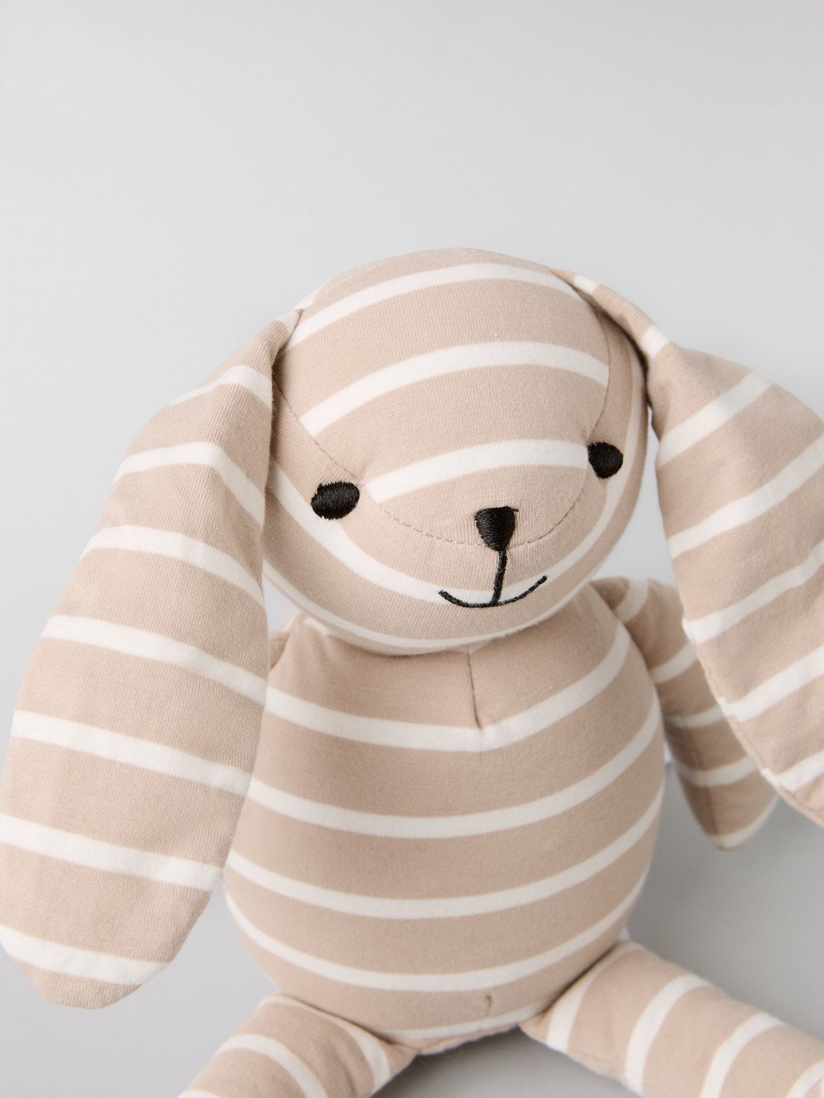 Myk kanin i økologisk bomull med våre klassiske striper – et perfekt første kosedyr!