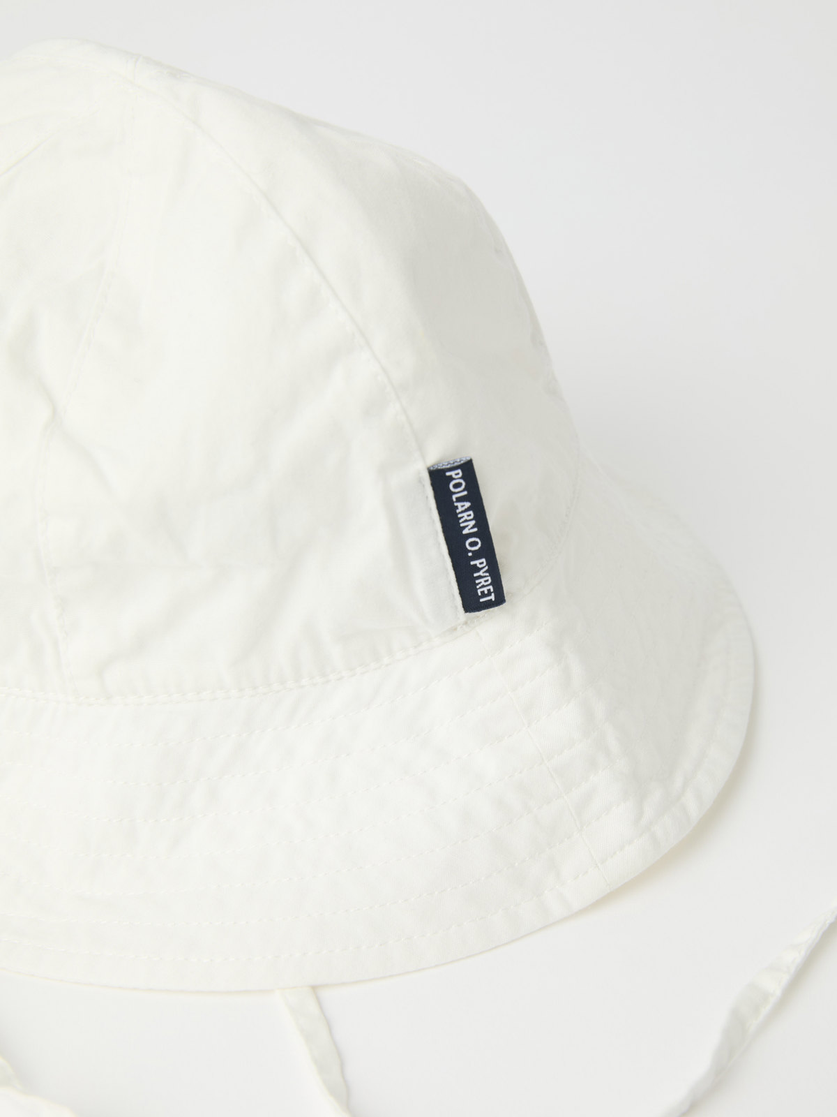 Ensfarget solhatt med knytebånd. Solhatten er fremstilt i 100 % økologisk bomull og har UV-beskyttelse UPF 50. Knytebåndet under haken holder solhatten på plass.