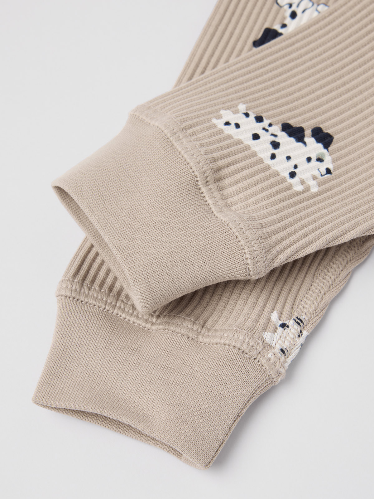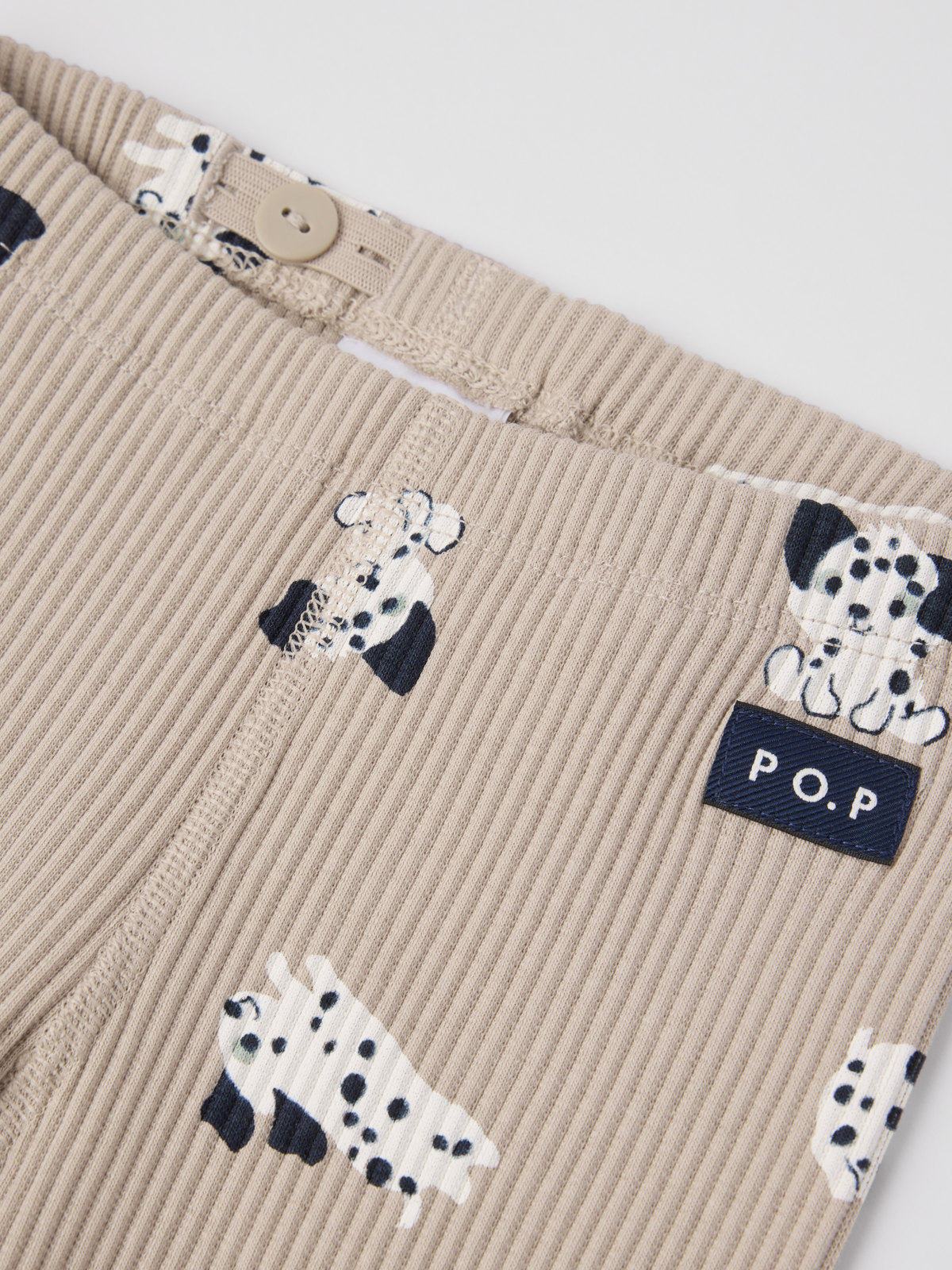Ribbestrikket bukse i myk økologisk bomull til baby. Buksen har ekstra myke og flate sømmer som ikke gnager mot følsom hud, og myk vrangbord nederst på bena og justerbar midje med knapphullsstrikk.