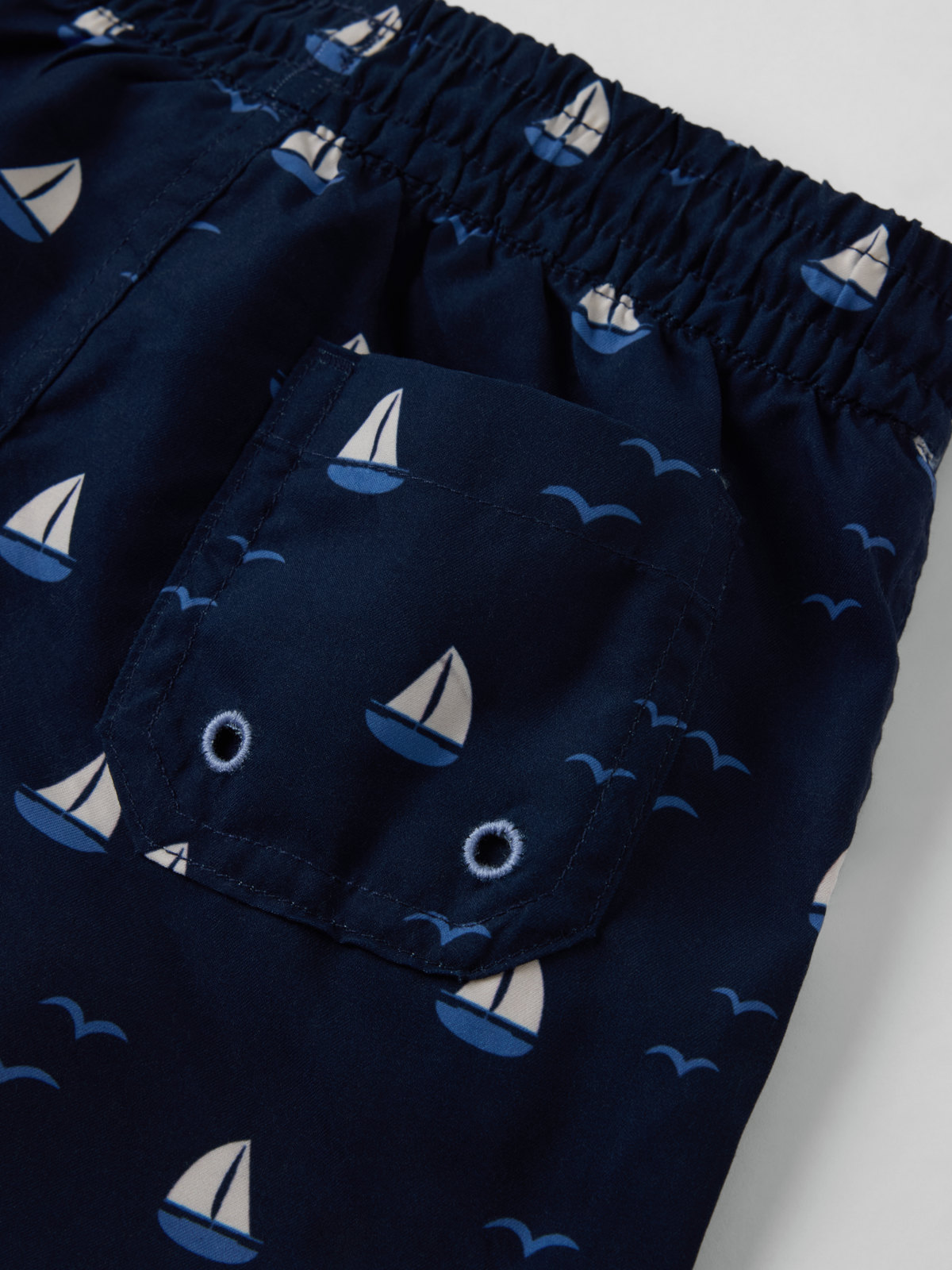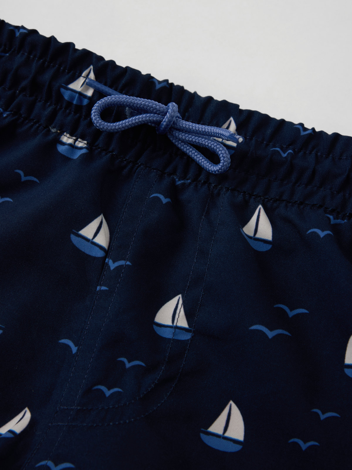 Badeshorts med elastisk midje og snøring, laget av resirkulert polyester. Shortsen har en myk innerbukse i mesh og en baklomme.