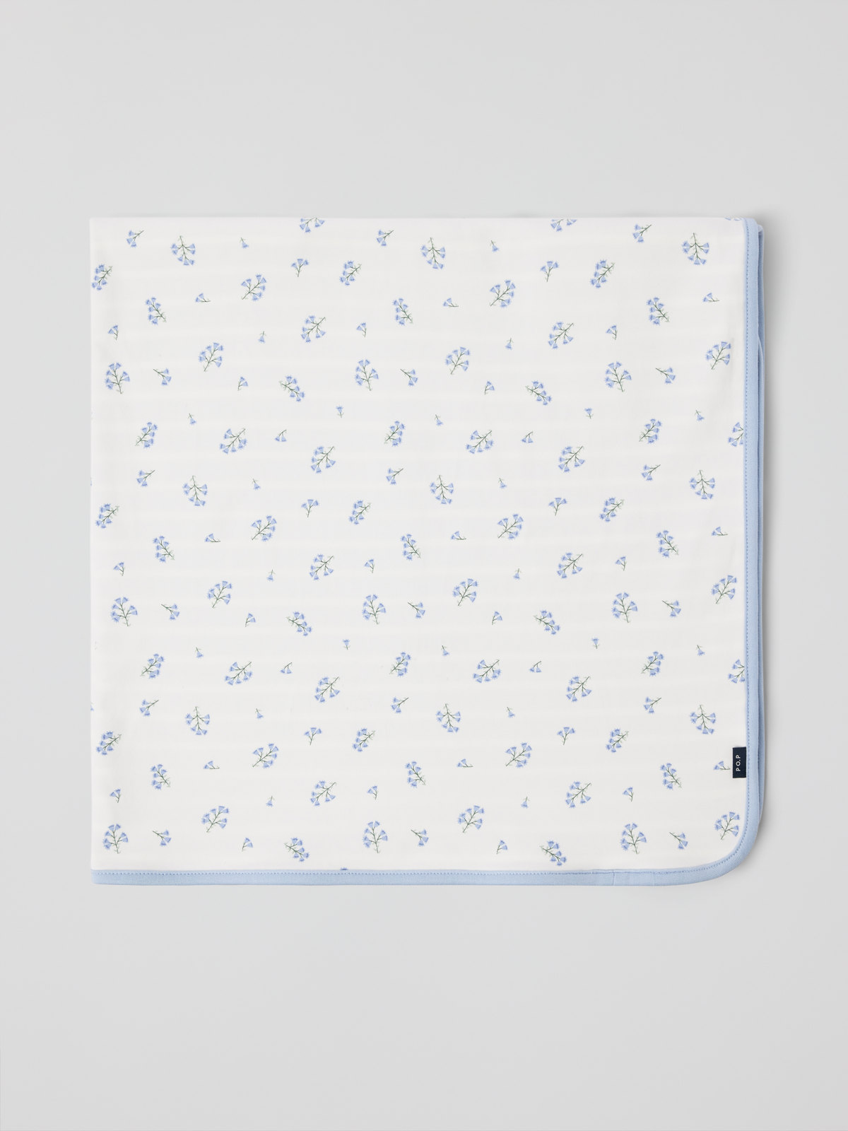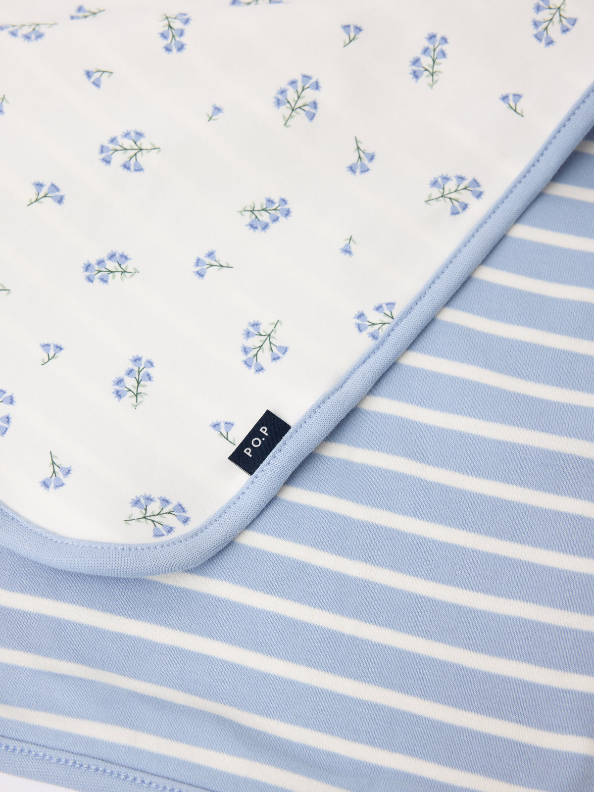 Myk og behagelig babyteppe i økologisk bomull, skånsom mot sensitiv hud – perfekt i vognen eller hjemme. Teppet har et fint print på den ene siden og vår klassiske stripe på den andre.