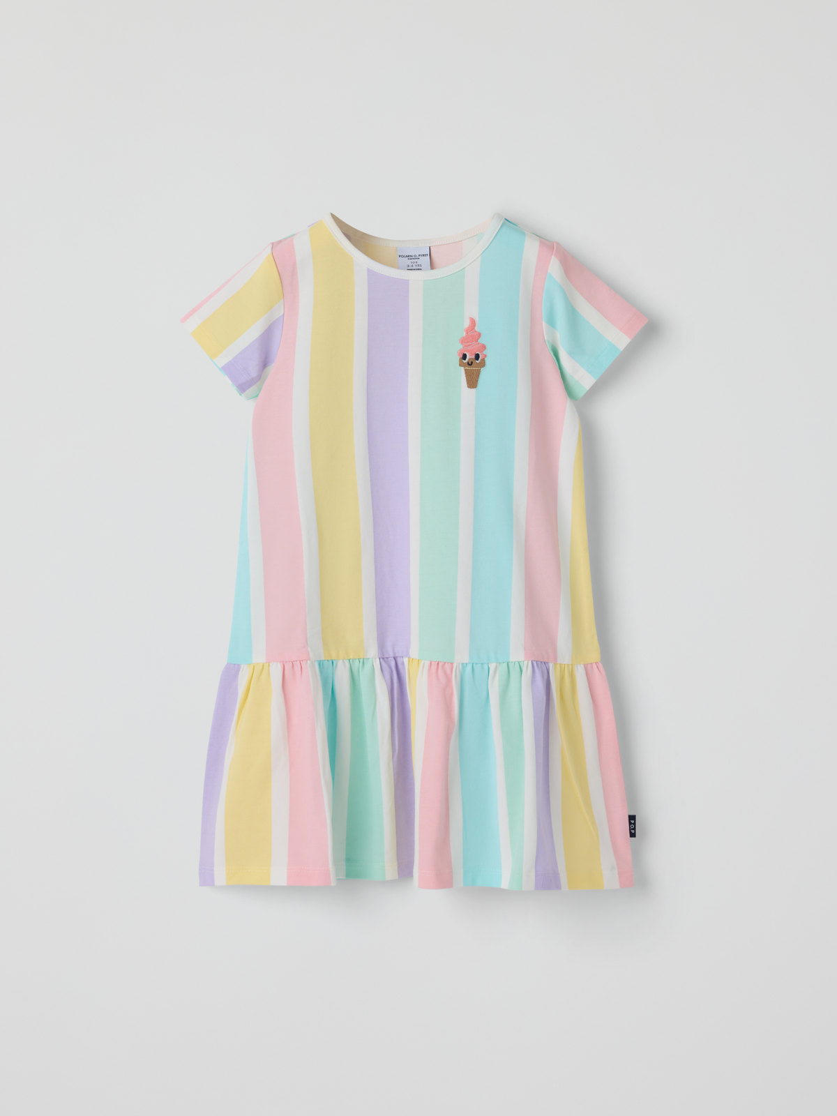 Kortermet kjole med striper i myk økologisk bomull – en sommerfavoritt til både hverdag og fest! Kjolen har lavt liv og rynket skjørt.