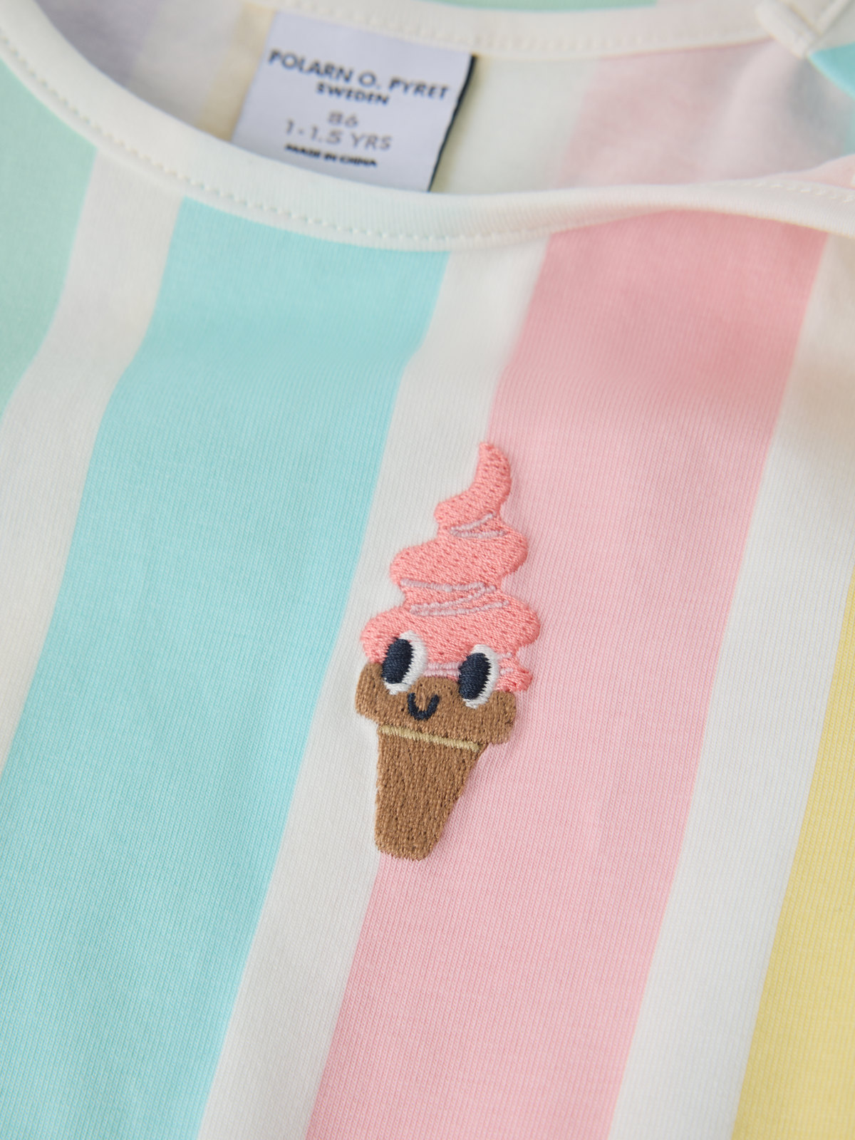 Størrelse 86-92 har en knapp på den ene skulderen for enklere klesskift.