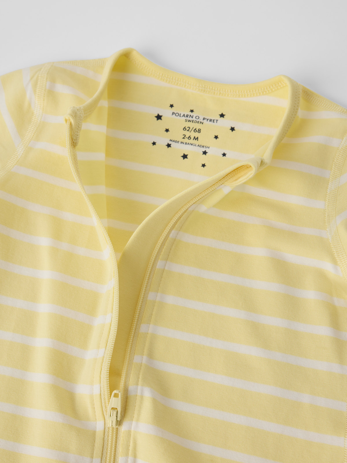 Den lange glidelåsen fra hals til fot gjør det enkelt å skifte.