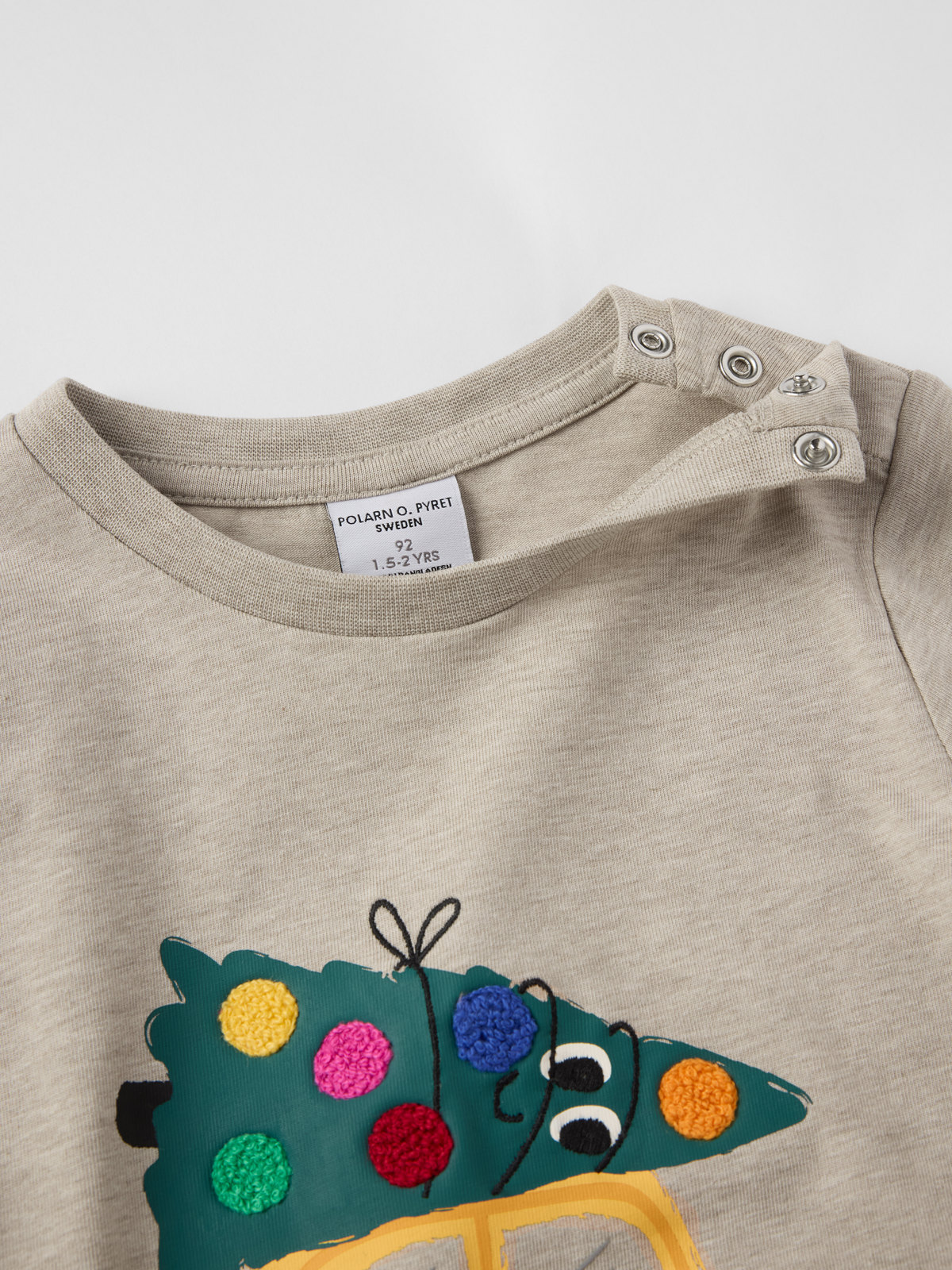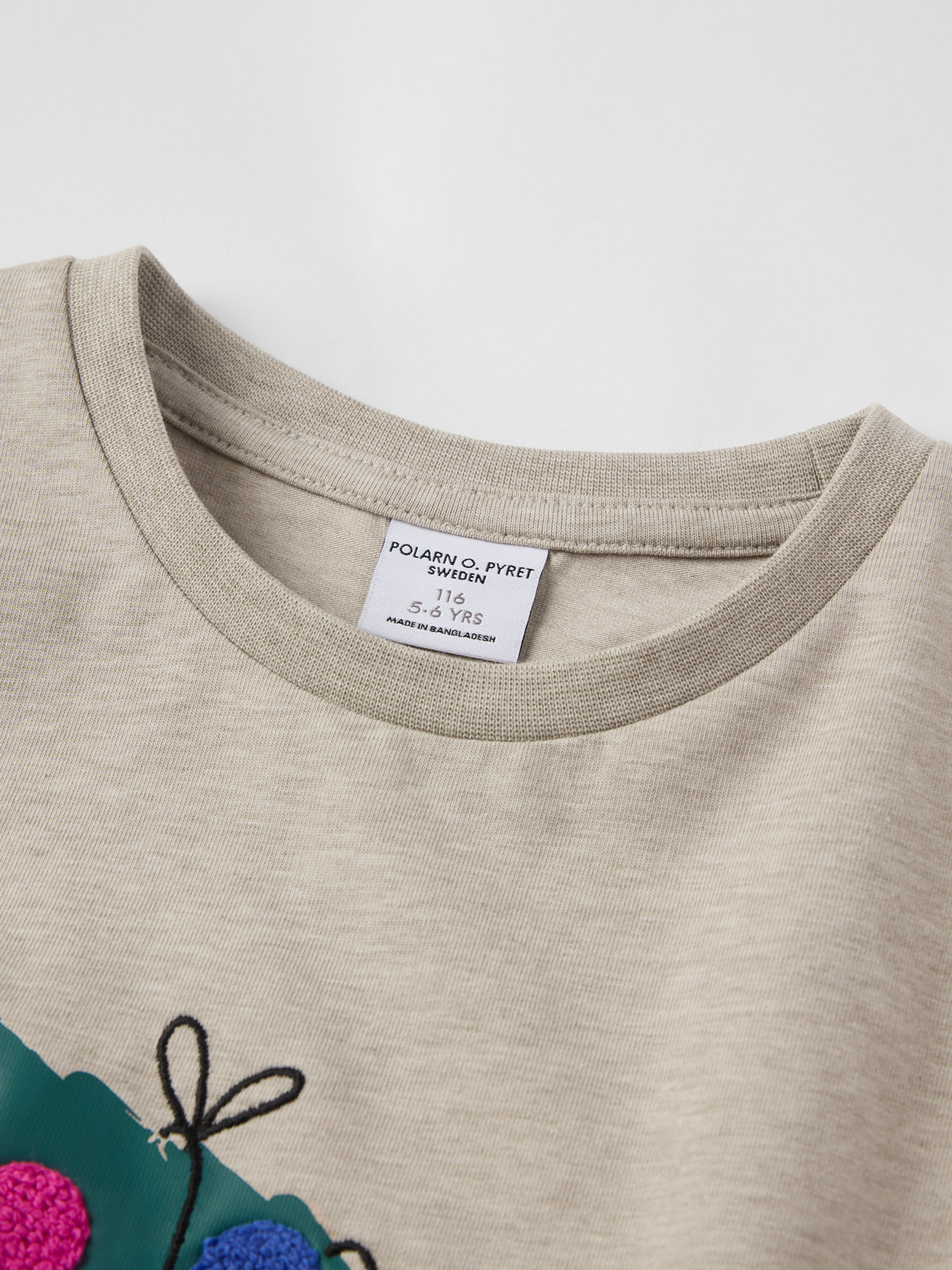 Tynn og behagelig genser i myk økologisk bomullstrikot – en favoritt å elske lenge! Genseren har et stort, lekent trykk på framsiden.