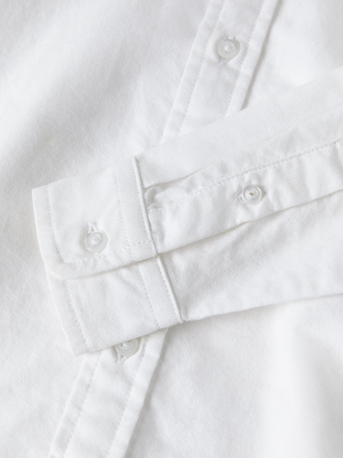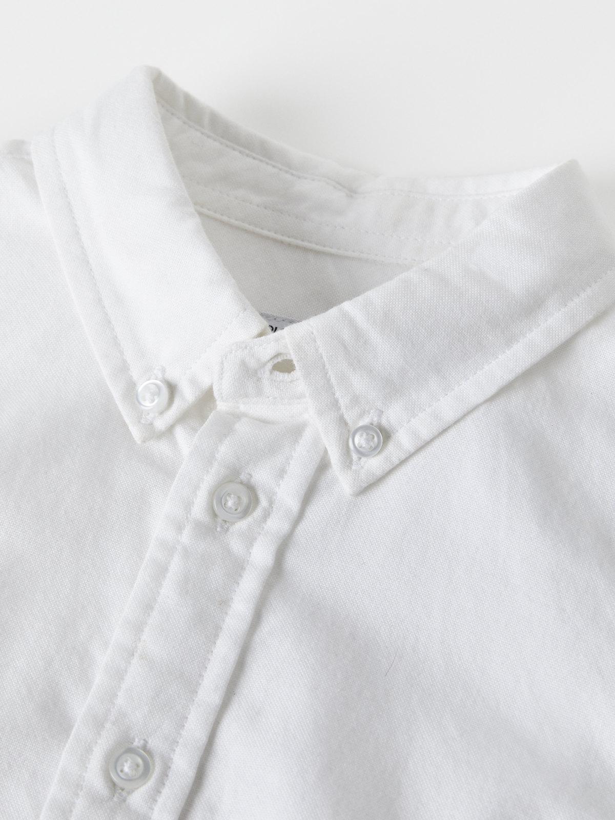 Vevd oxfordskjorte med buttondown-krage. Skjorten er i 100 % økologisk bomull og har skulderskjæring med fold i ryggen.