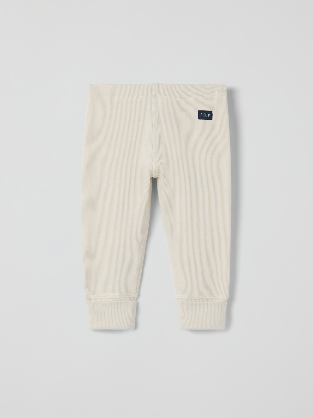 Ribbestrikket bukse i myk blanding av Tencel™ lyocell og økologisk bomull. Materialet er svalt, behagelig og skånsomt mot sensitiv hud. Buksen har nedbrettbare mansjetter nederst på bena og midjen kan justeres med knapphullsstrikk.