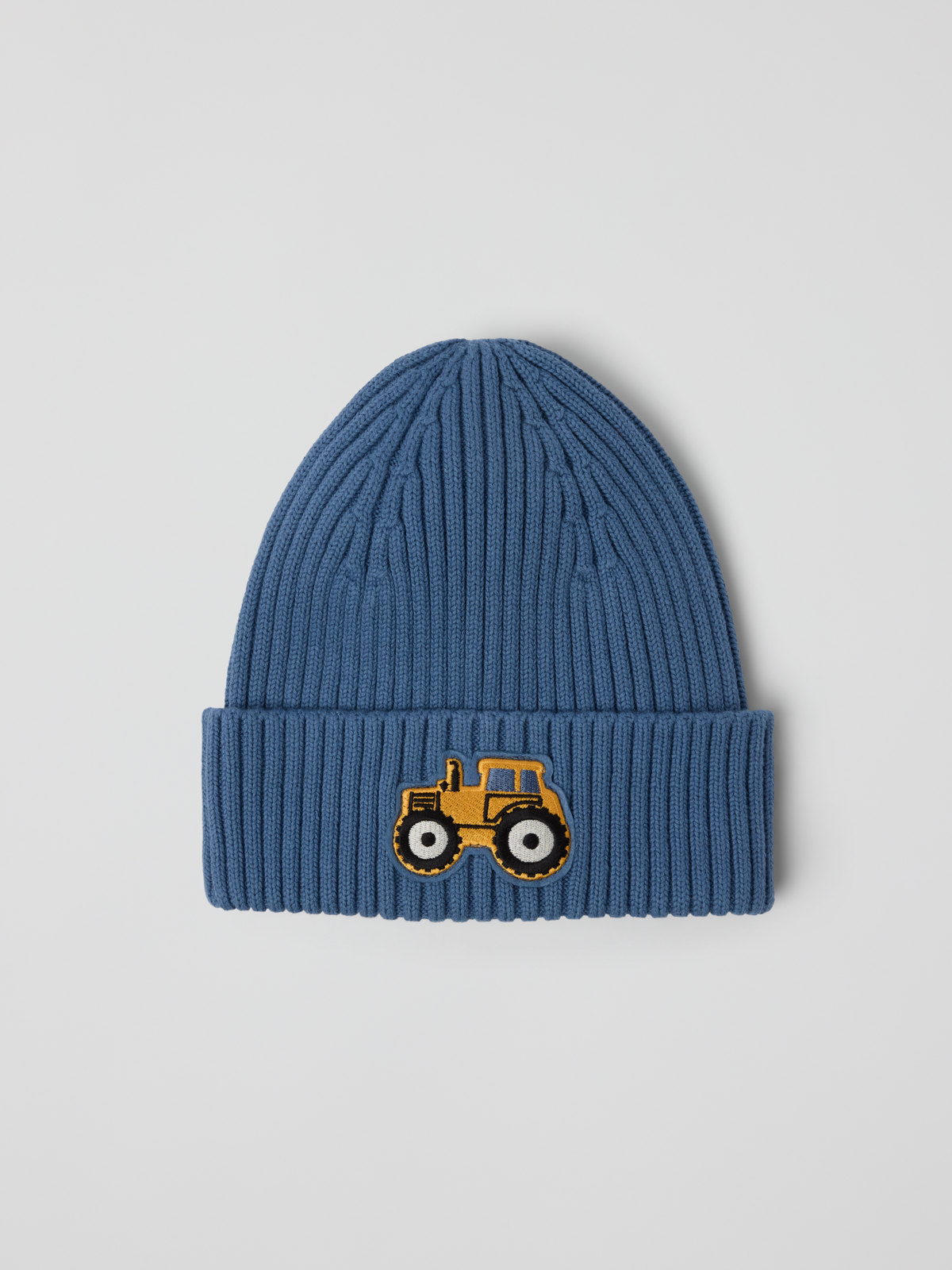 Ribbestrikket lue med applikasjon