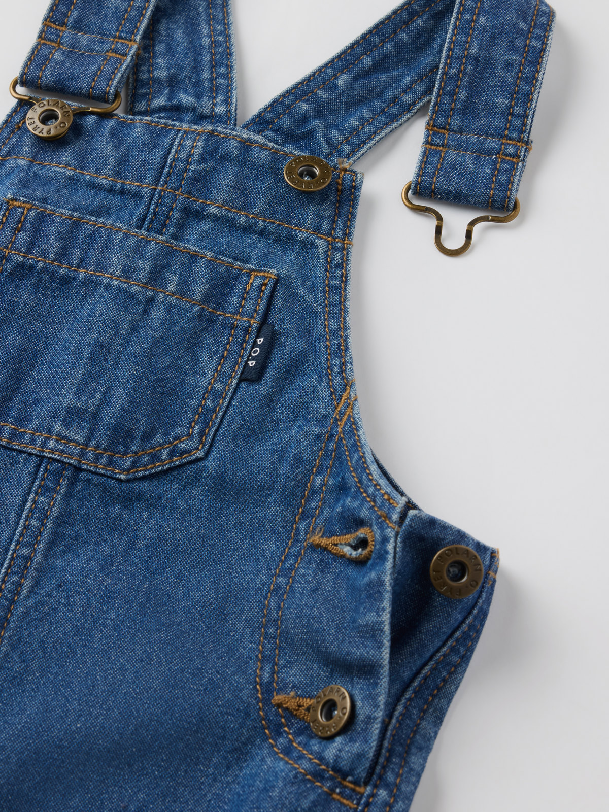 Selebukse i myk og lett denim for baby – en ekte høstfavoritt! Buksen har rette ben, justerbare seler med spenner foran og knapper i sidene for enkel av- og påkledning. Den har også en brystlomme foran og to baklommer. Trykknapper i skrittet gjør bleieskift enklere.