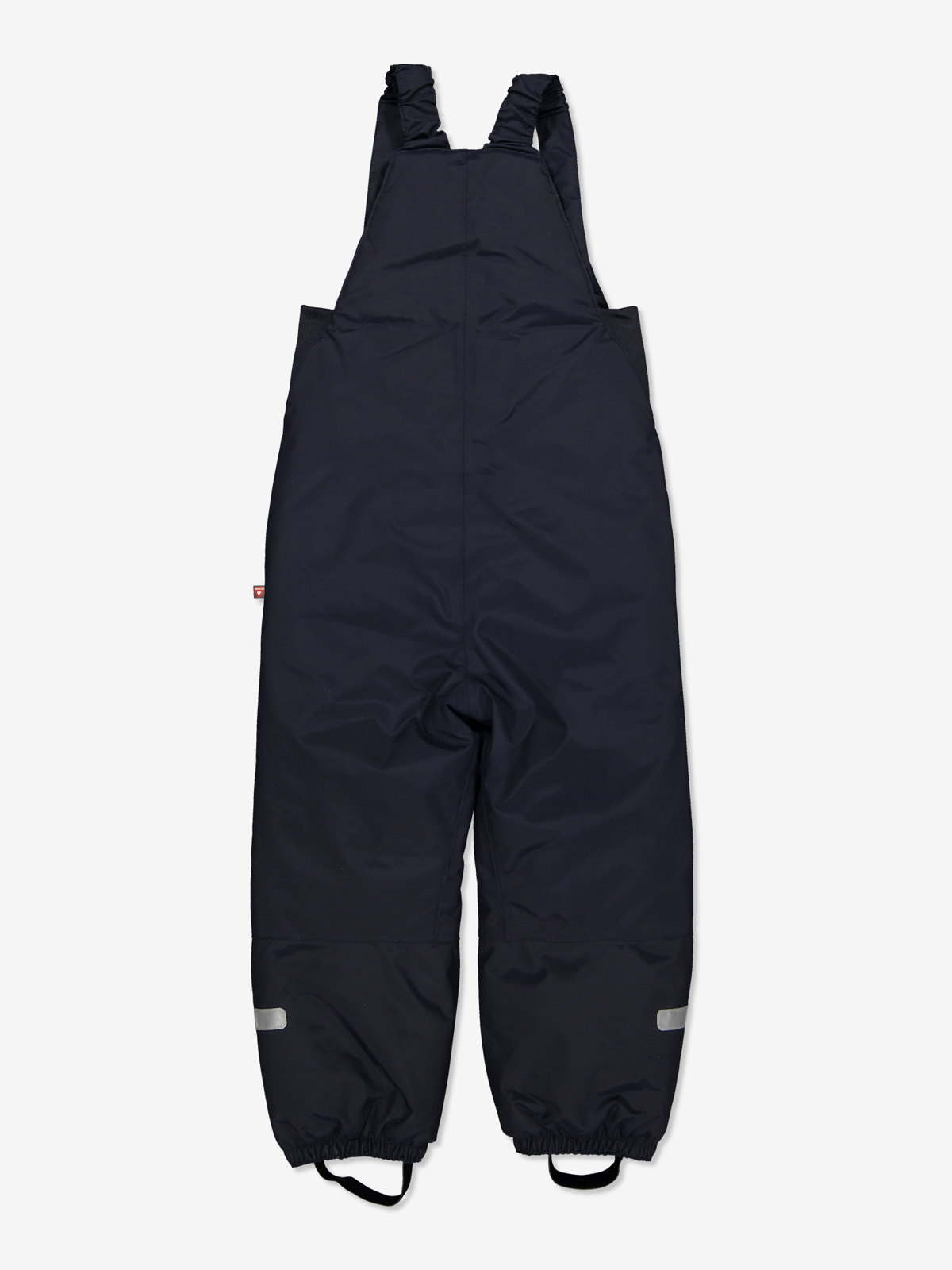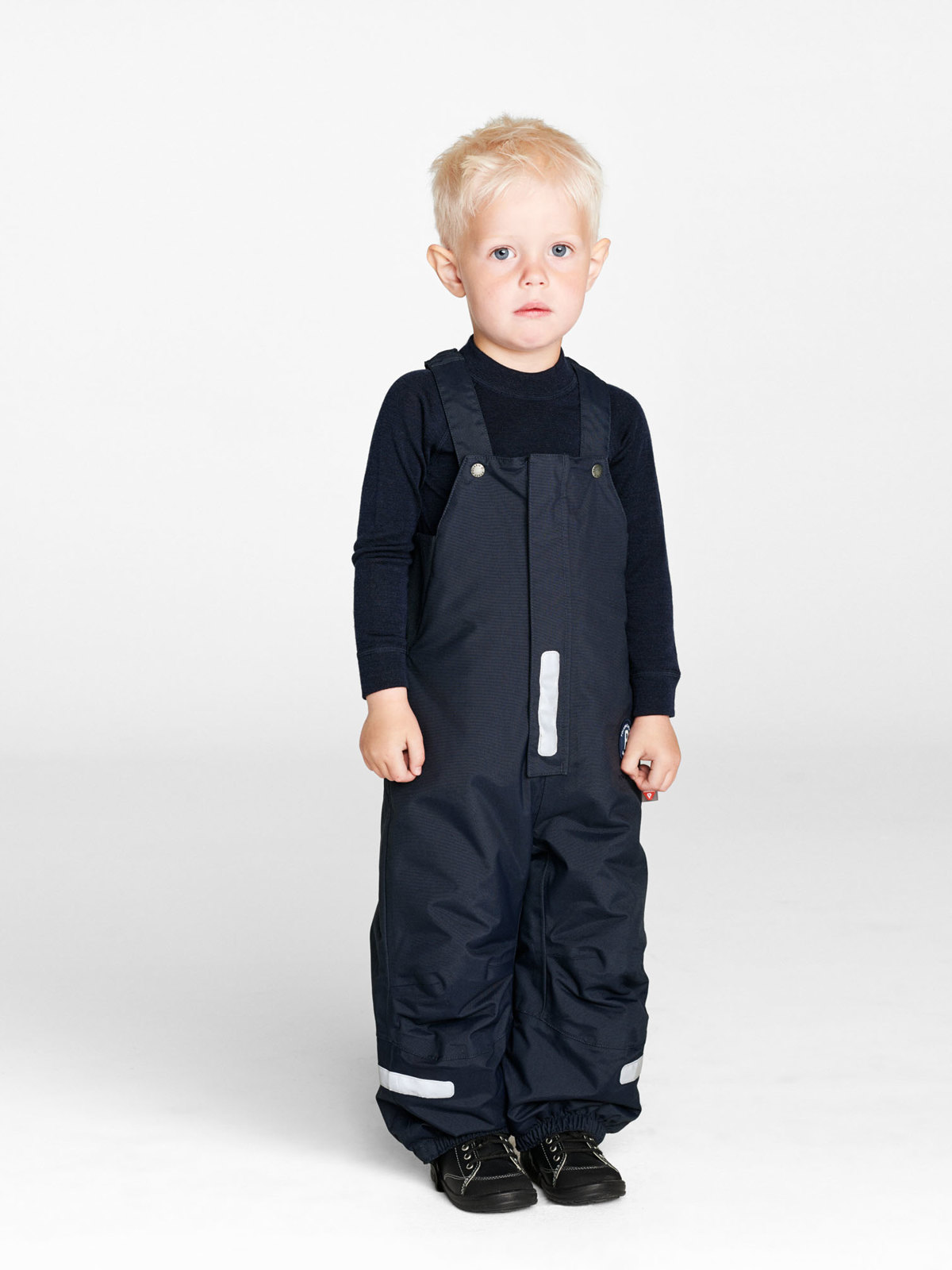 Buksen er fôret med varm fleece og har en lang glidelås foran, samt elastisk, ribbestrikket stoff i sidene som forenkler klesskift. Glidelåsen har dessuten en vindklaff som gir ekstra beskyttelse mot kulde og snø. De utskiftbare fotstrikkene holder buksen på plass. Kombiner vinterbuksen med vår vatterte vinterjakke og barnet er klar for eventyr i snøen.