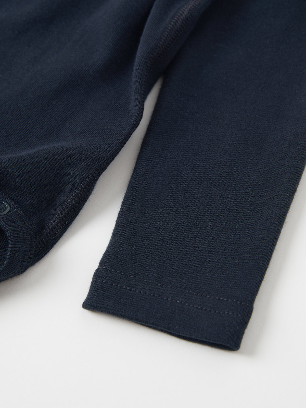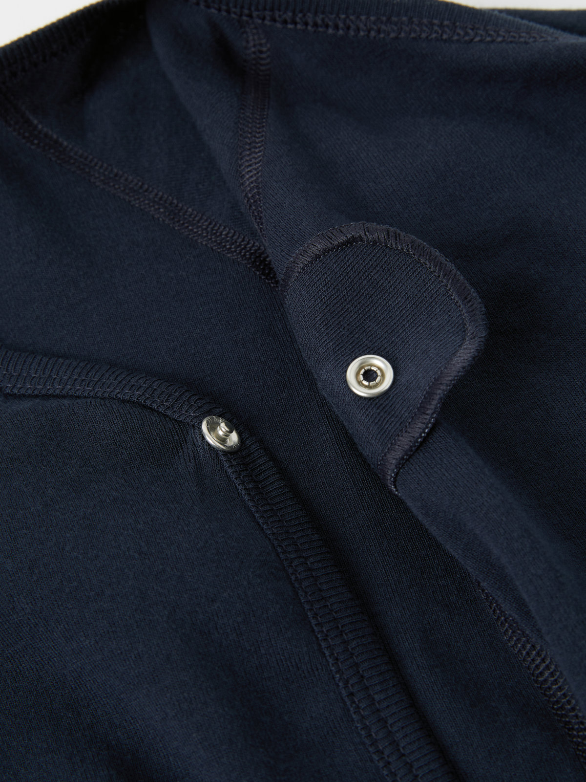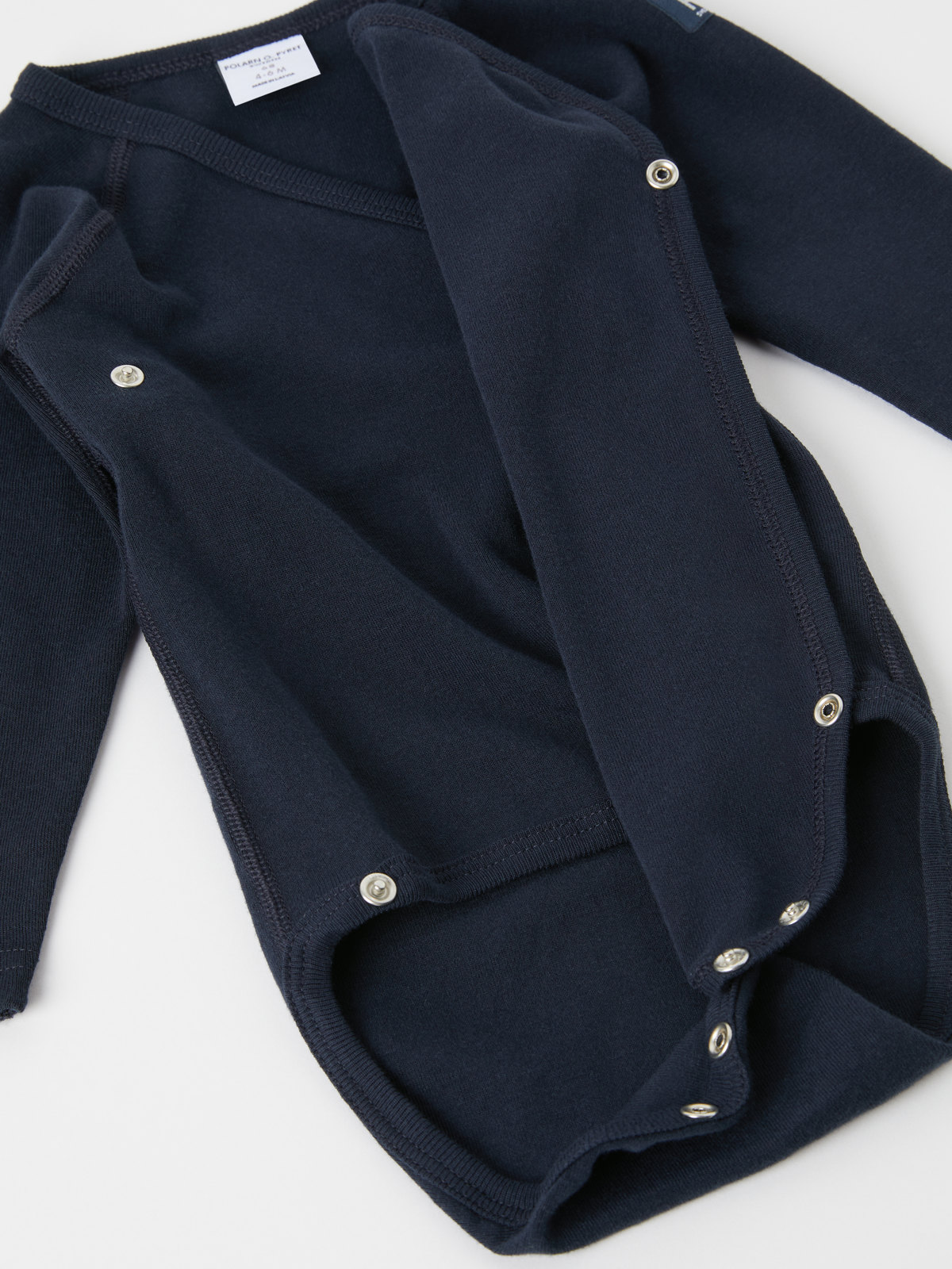 Omslagsbody i økologisk bomull til nyfødt. Bodyen har våre klassiske striper og myk, ribbestrikket vrangbord nederst på ermene, som kan brettes ned etter hvert som babyen vokser. Trykknappene langs omslagsåpningen og i skrittet gir enklere kles- og bleieskift.