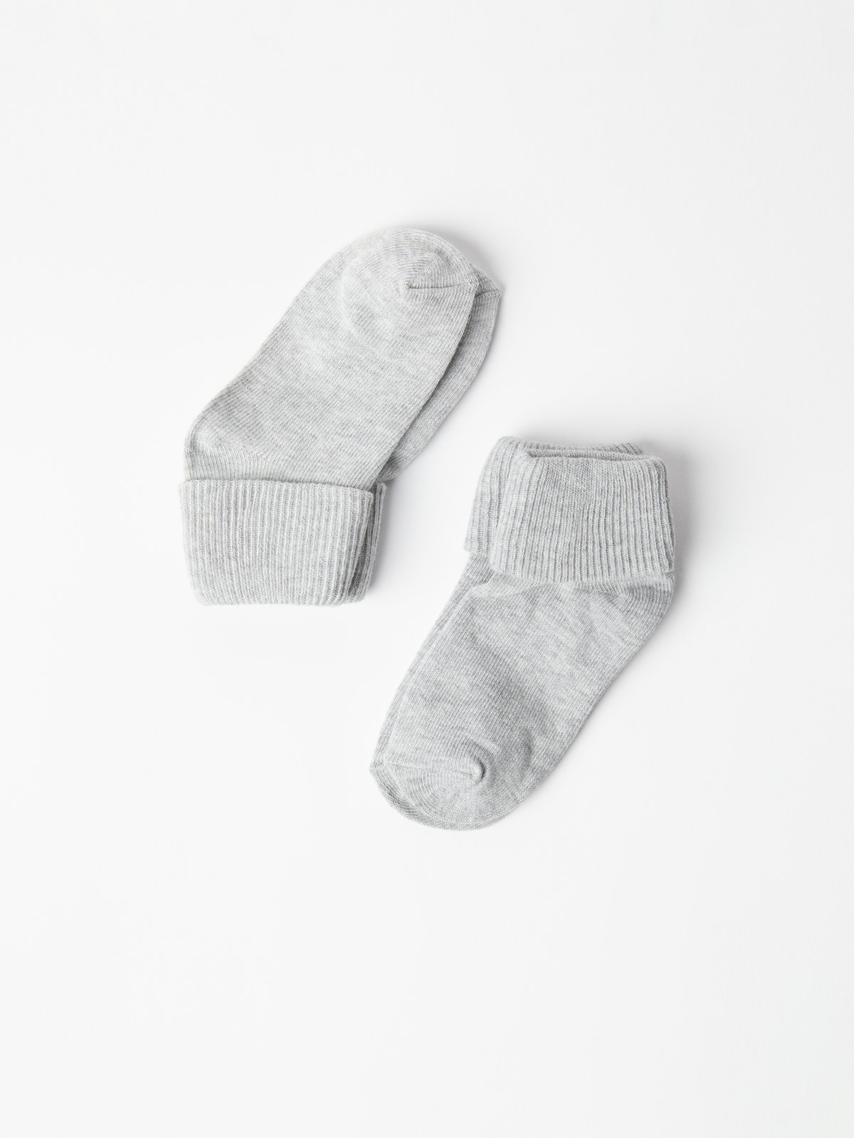 Topakning sokker myk økologisk bomull til baby. Vrangborden kan brettes opp eller ned. Produktet inngår i vårt 3 for 2-tilbud, som ikke kan kombineres med andre tilbud.