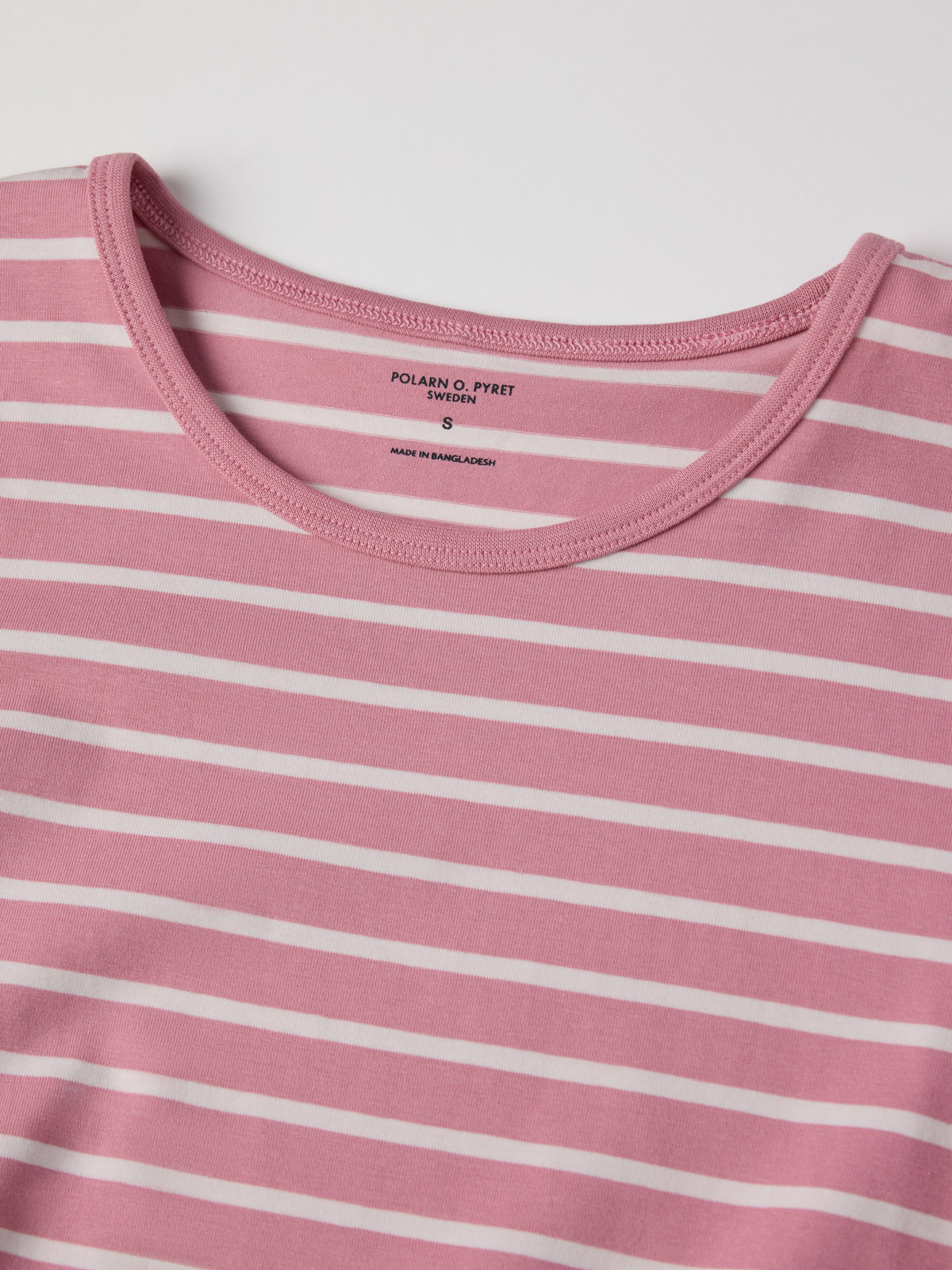 Stripet kortermet nattkjole i 100 % myk økologisk bomull til voksen – en klassiker å elske lenge. Nattkjolen er sydd med ekstra myke sømmer som ikke gnager.