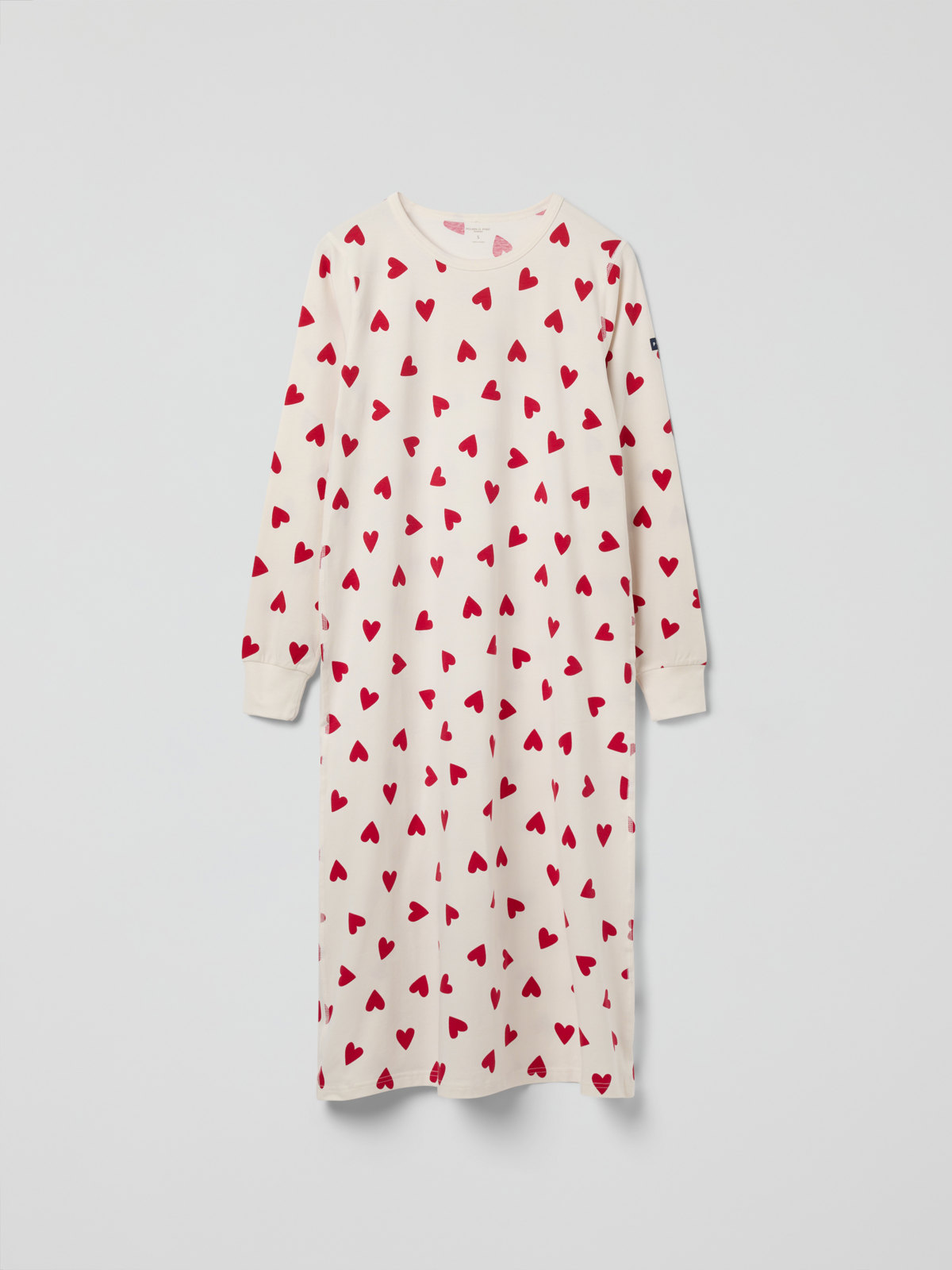Myk og deilig nattkjole i økologisk bomull til voksen. Nattkjolen er sydd med ekstra myke, flate sømmer som ikke gnager og har ekstra lange mansjetter nederst på ermene.