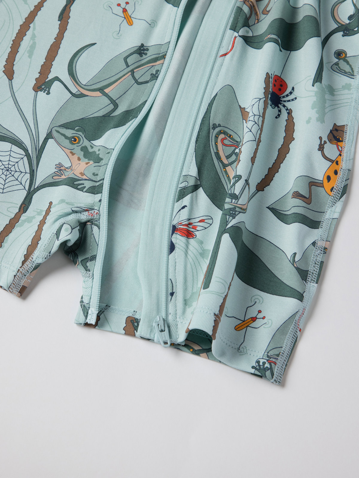 Kort hel pyjamas i tynn og sval trikot av Tencel™ lyocell – perfekt for varme netter! Pyjamasen har ekstra myke sømmer og er skånsom mot følsom hud. Den er helmønstret med krypdyr.