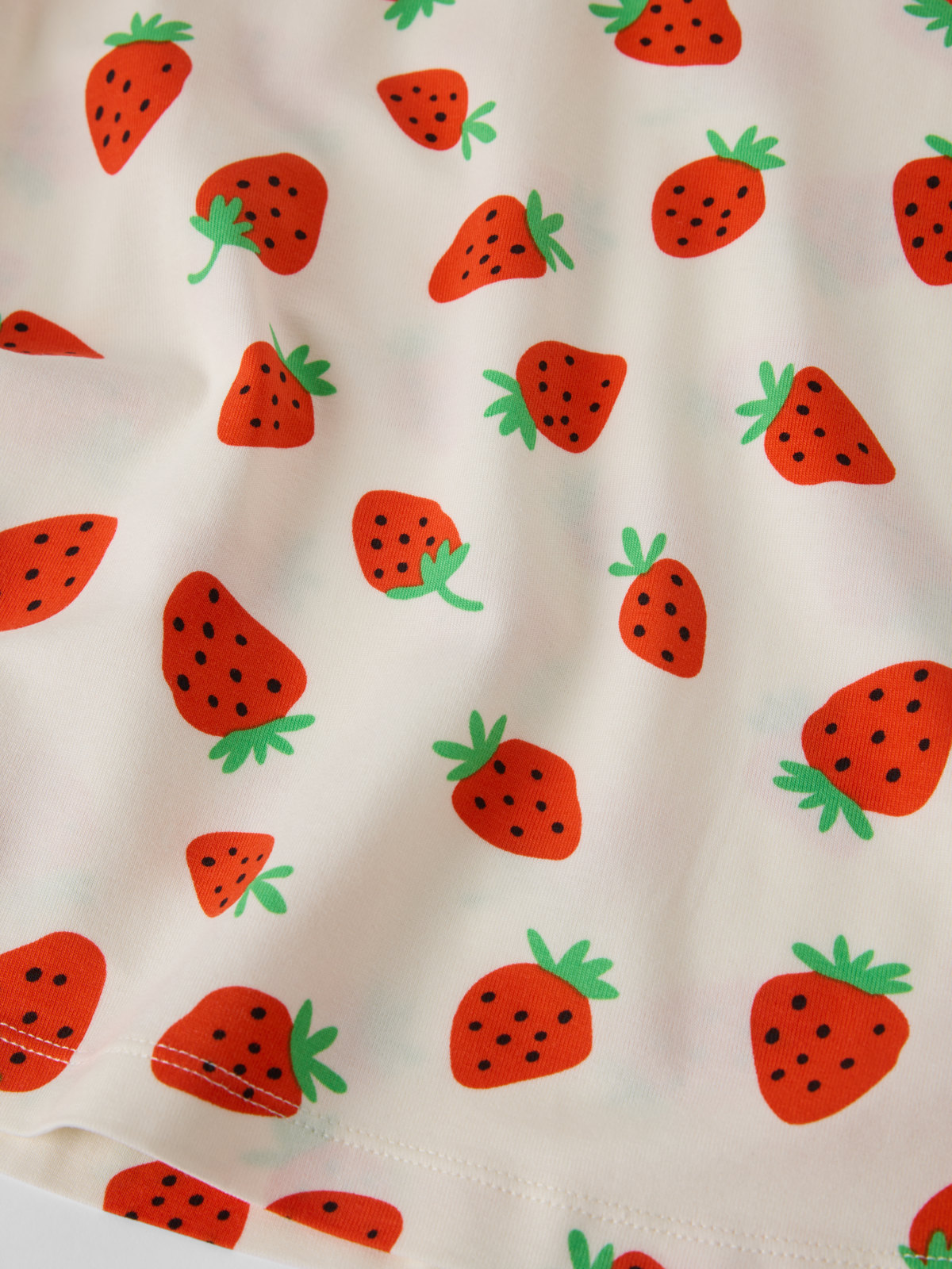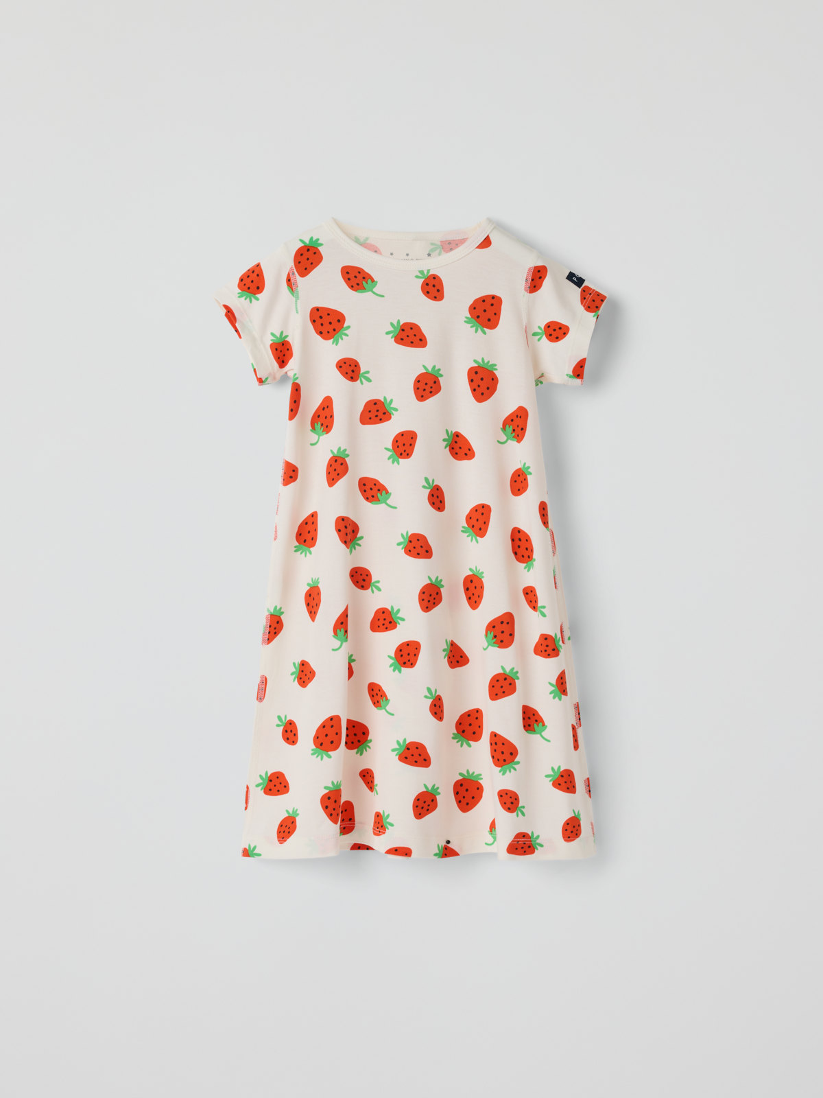 Kortermet nattkjole i tynn og sval trikot av Tencel™ lyocell. Nattkjolen har ekstra myke sømmer som ikke gnager og er heldekket med jordbærmotiv.