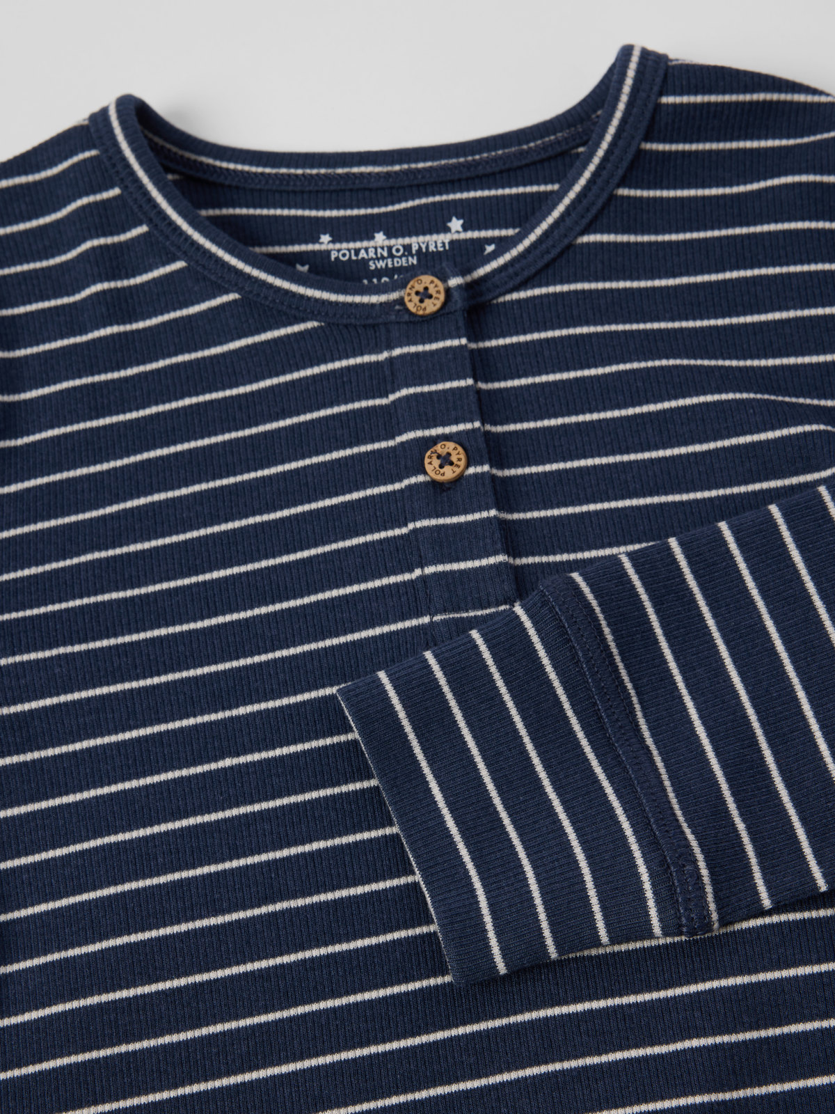 Stripete todelt pysjamas i lett og sval jersey av Tencel™ lyocell og økologisk bomull, sydd med ekstra myke sømmer som ikke gnager. Overdelen har kort knappestolpe foran, og buksen har mansjetter nederst for en behagelig passform.