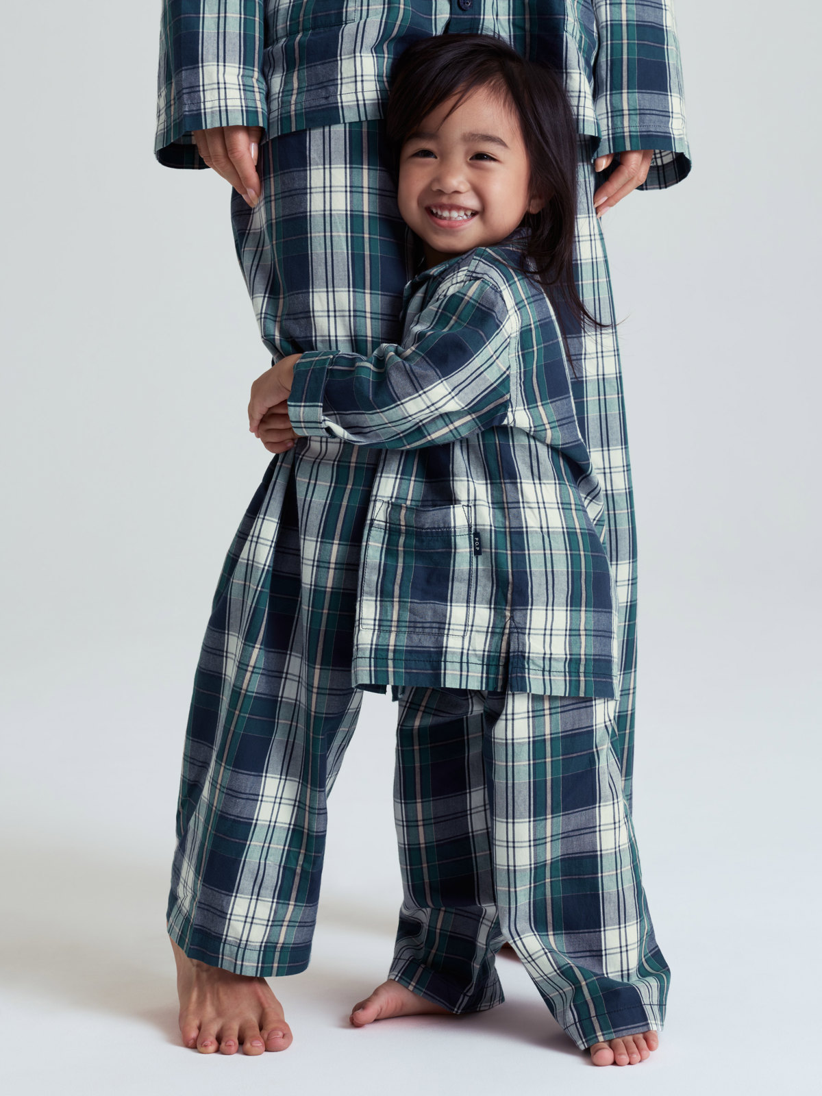 Rutet todelt pyjamas med klassisk skjorte og bukse i rett modell til voksne – match hele familien! Pyjamasen er fremstilt i lett børstet bomull og har elastisk midje.