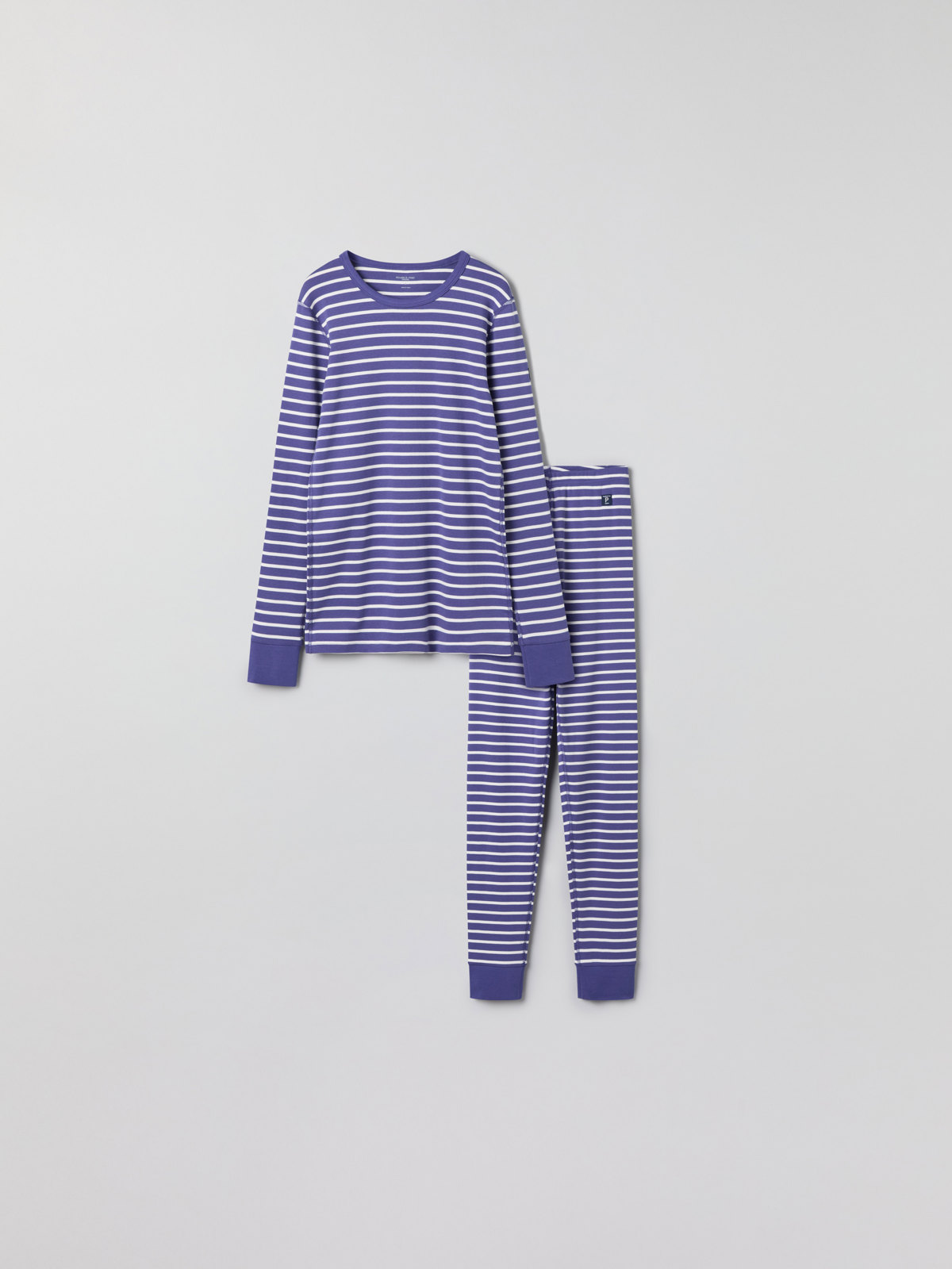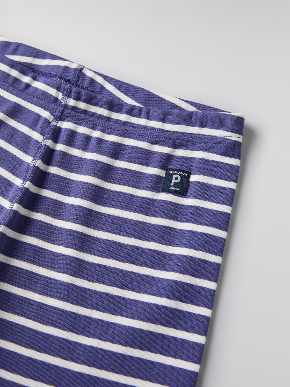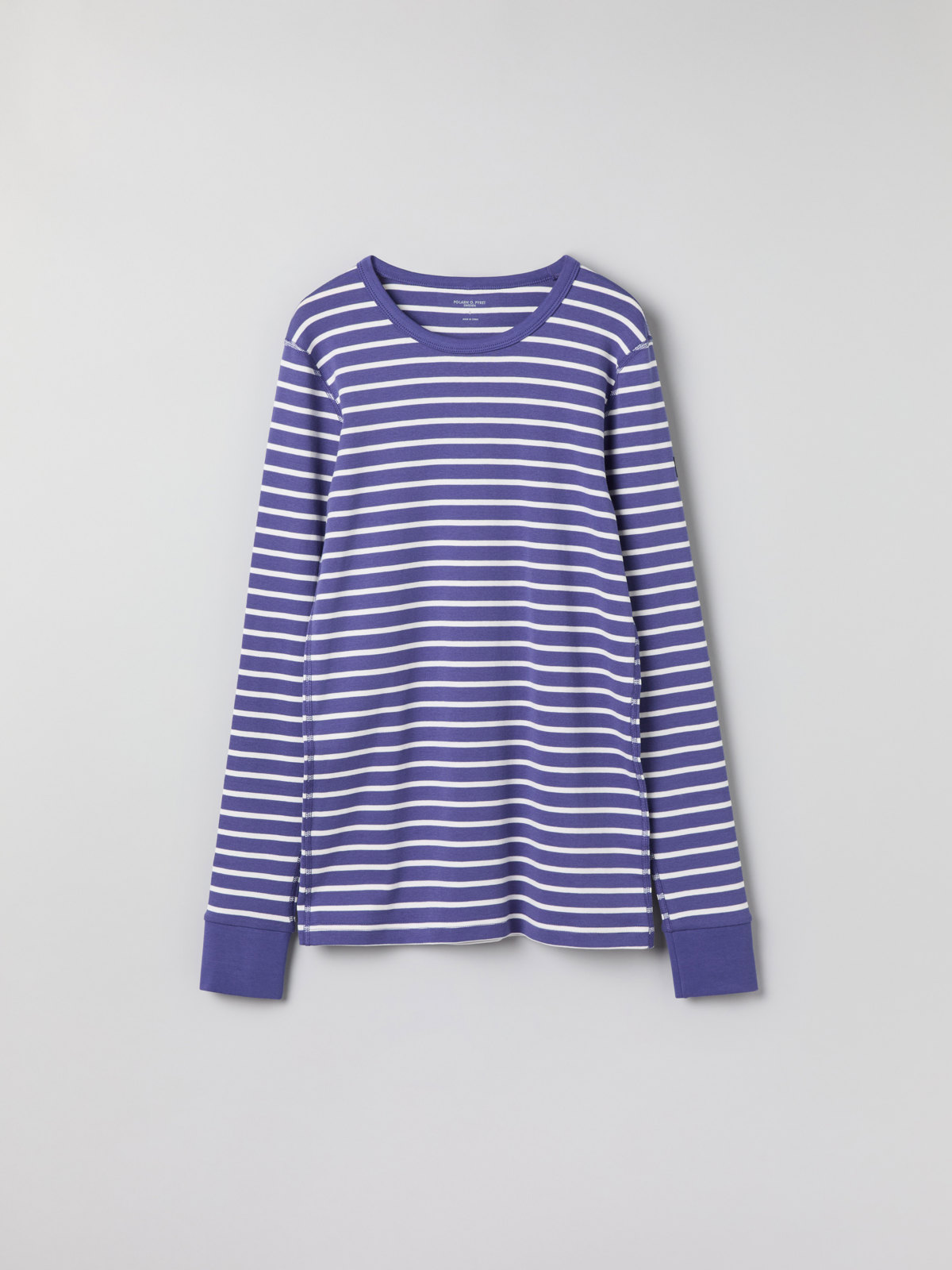Sett med overdel og bukse i våre klassiske striper til voksen. Overdelen har myk, ribbestrikket vrangbord rundt halsutringningen og nederst på ermene. Buksen har elastisk midje og myk ribbestrikket vrangbord nederst på bena.