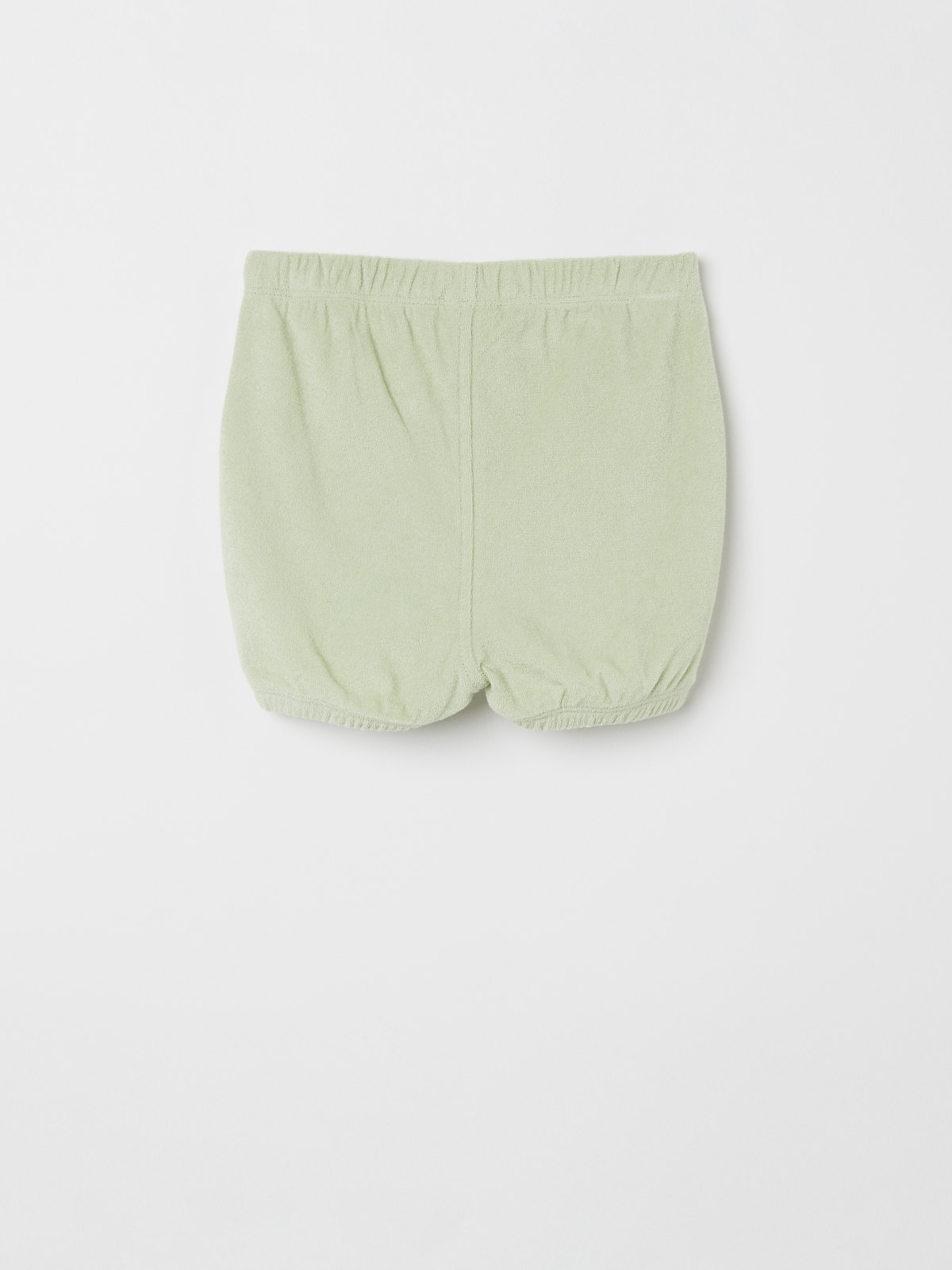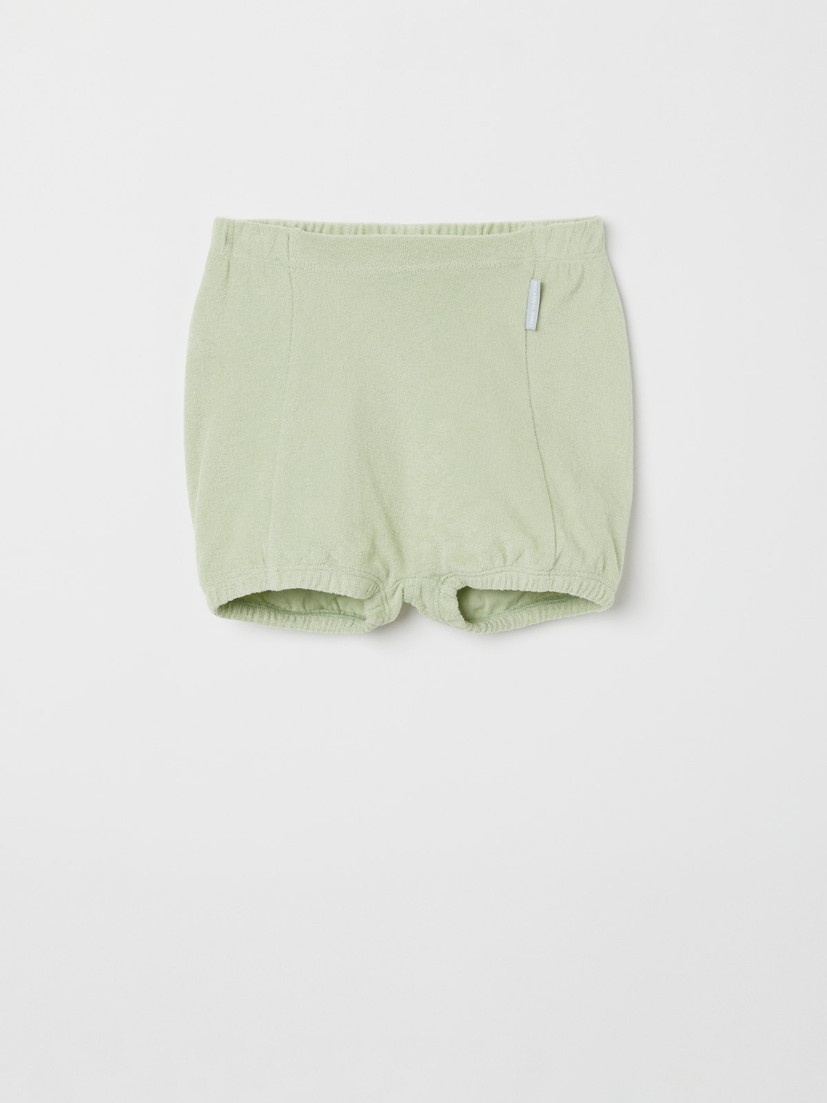 Ensfarget shorts i myk og behagelig 100 % økologisk bomullsfrotté til baby. Plagget har myk strikk i midjen og nederst på bena.