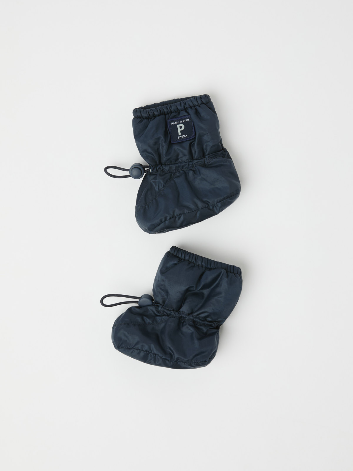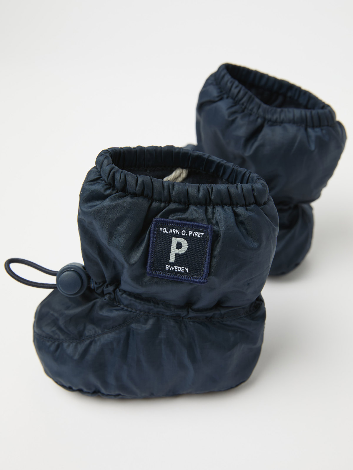 Tøflene har en deilig vattering i myk, resirkulert polyester. Snoren rundt ankelen gjør at de sitter godt på og kan reguleres etter barnets fot.