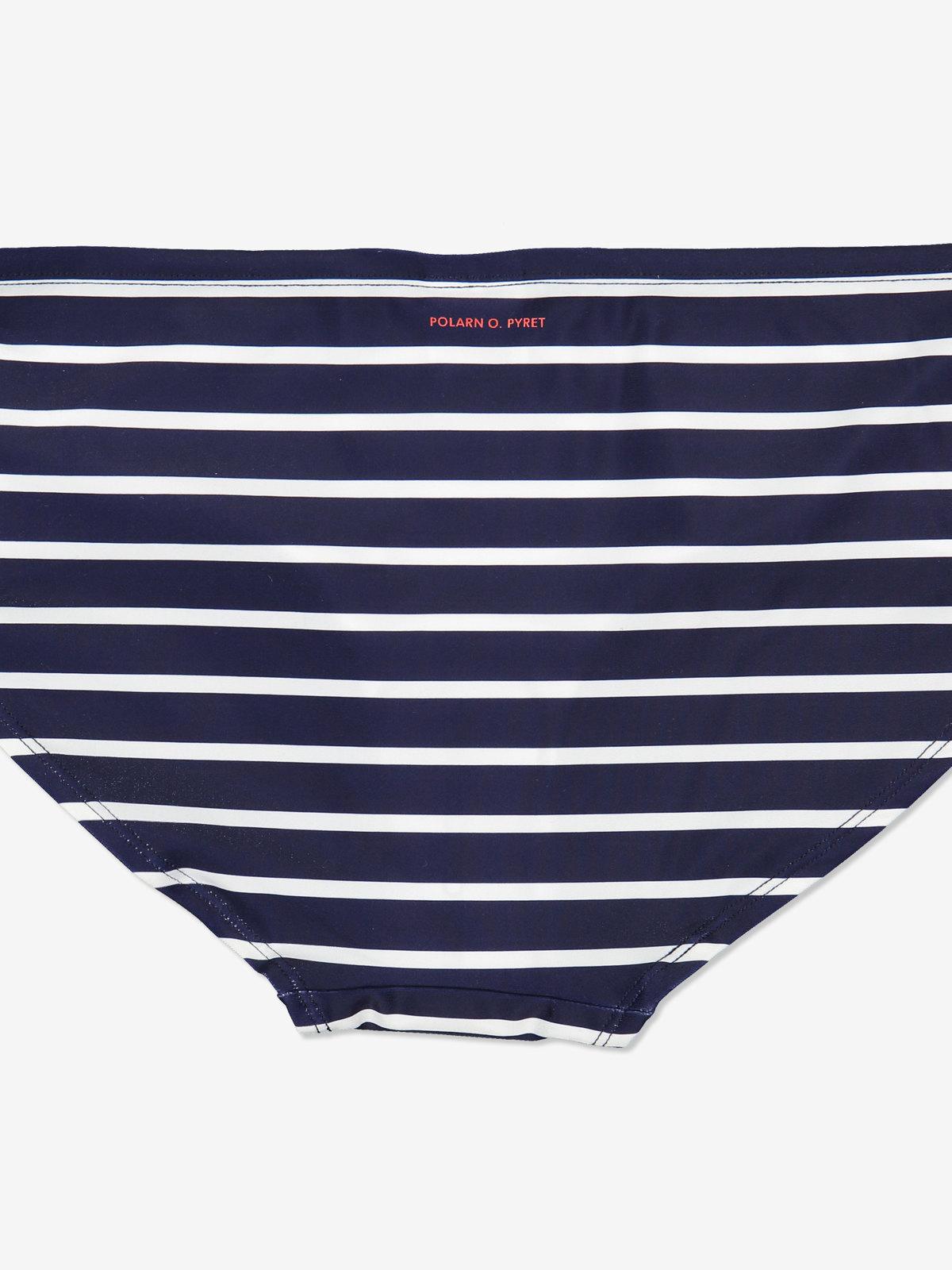 Stripet bikinibukse i voksenstørrelser. Buksen er i resirkulert stoff.